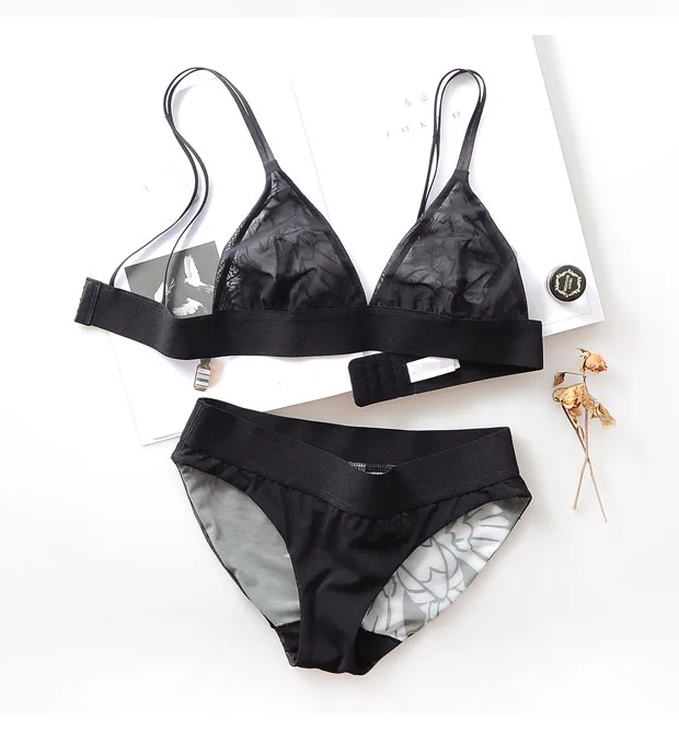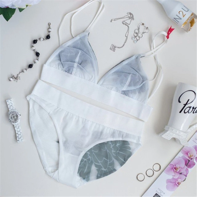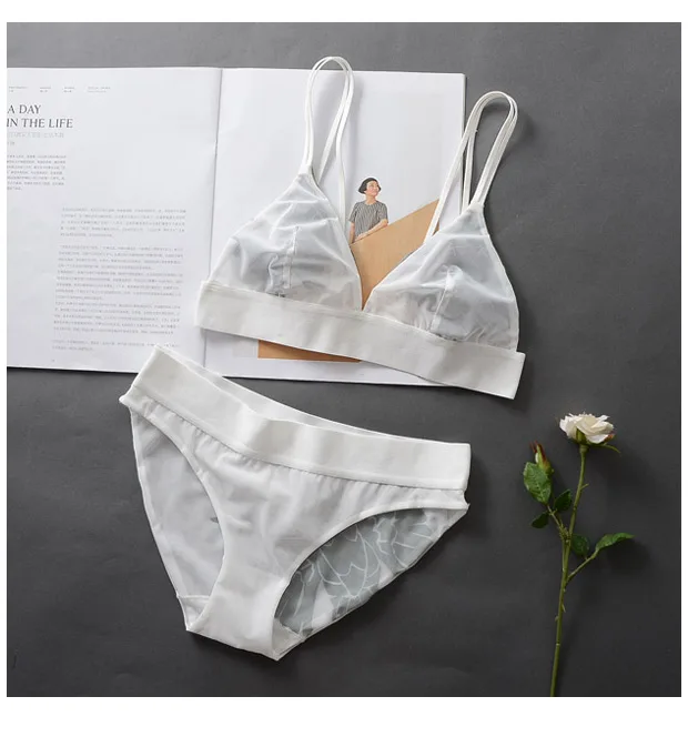 Мягкий комплект, сетка, грудь не просвечивает. На маленькую и аккуратную грудь идеально. Трусики с очень удобной резинкой, не натирают . На 38 русс лучше S, на 40-M