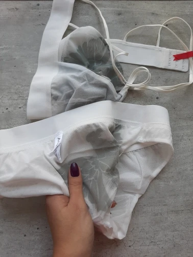 Комплект симпатичный, сел хорошо, но после первой же стирке в ХОЛОДНОЙ воде этот Чертов принт поленял и босая сетка мгновенно окрасилась. Мб темный вариант таких сюрпризов не принёс бы, но белый комплект не советую! Получается, ещё до того, как я начала носить белье, оно уже пришло в негодность