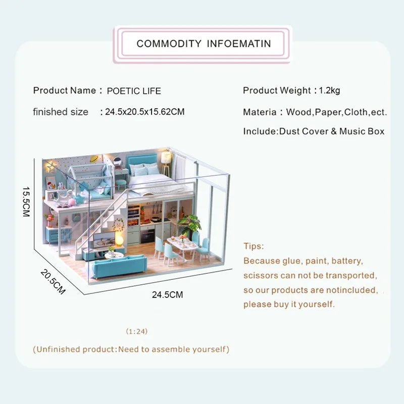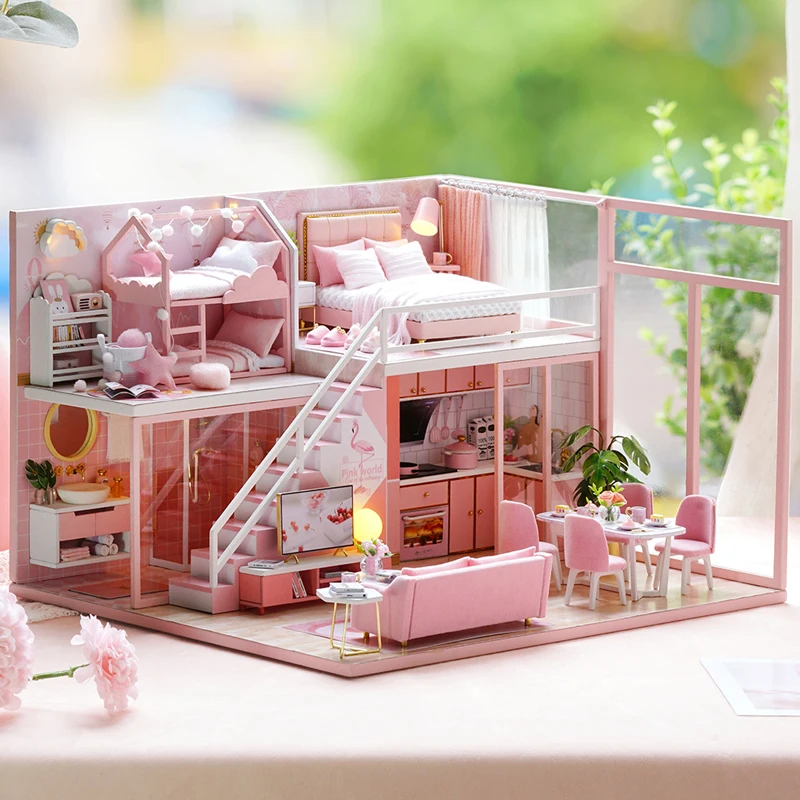 Cutebee DIY кукольный домик мебель деревянный кукольный домик со светодиодсветильник кой лучший подарок для детей на день рождения