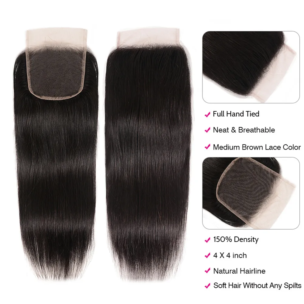 100% натуральные волосы, 4x4, прямые, бразильские, с детскими волосами