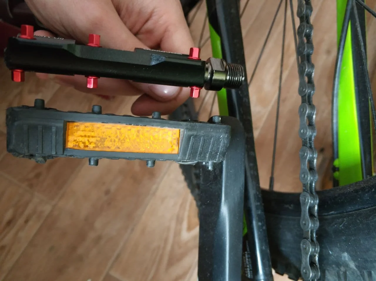 Педали качественные, лёгкие, прокручиваются мягко. Запасных шипов в комплекте не было, но на педалях они вкручены хорошо, надеюсь не потеряю. Посылка дошла быстро. Товар рекомендую.