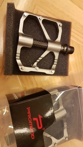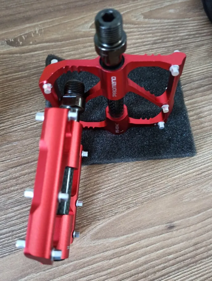 Отзыв будет не особо по информативным т.к. сейчас не сезон и возможности нормально проверить как ведут себя эти педали, нету. Что нравится: они очень лёгкие, , в целом собраны хорошо, ничего не люфтит не скрипит, выглядят лучше стоковых, хорошо крутятся, якобы пром подшипник. Что не нравится: они меньше стоковых. Доставка всего 8 дней до постамата.