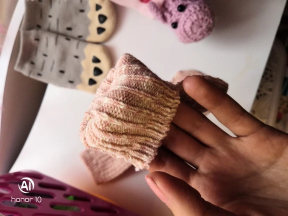Хорошие носочки, почти гольфы, мягкие ножки не передавливает , не сползают, сидят как влитые, стираются нормально не садятся, из минусов остаются нитки на ножках ребёнка в районе пальцев, попробую ещё раз постирать может пройдёт, на тонкий носок идеально. Не скользит ножка по линолеуму в них.