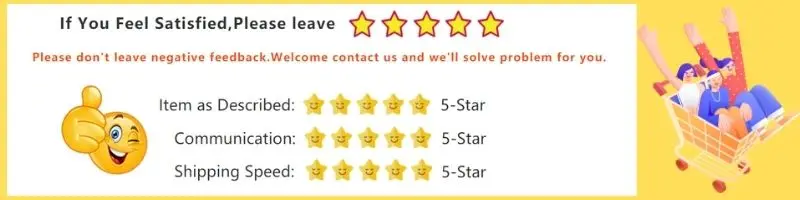 Мы все возможное, чтобы вы поделились этим позитивным опытом с другими покупателями и положительную оценку в 5 звезд. Если по каким-либо причинам вы не удовлетворены своей покупкой, пожалуйста, свяжитесь с нами, прежде чем оставлять отзыв, и мы поможем решить любую проблему для васОтзыв будет оставлен каждому покупателю, который завершил сделку и оставил положительный отзыв нам.