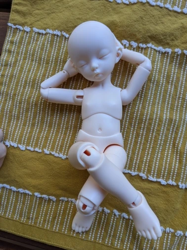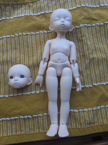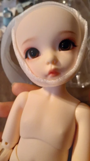 Милая кукла; Маленькая смазка на голову, легко снимается с помощью также доставленной губки. Спасибо за дополнительные лицевые пластины (спальное лицо) и дополнительный набор рук. Я буду заказывать у вас снова.