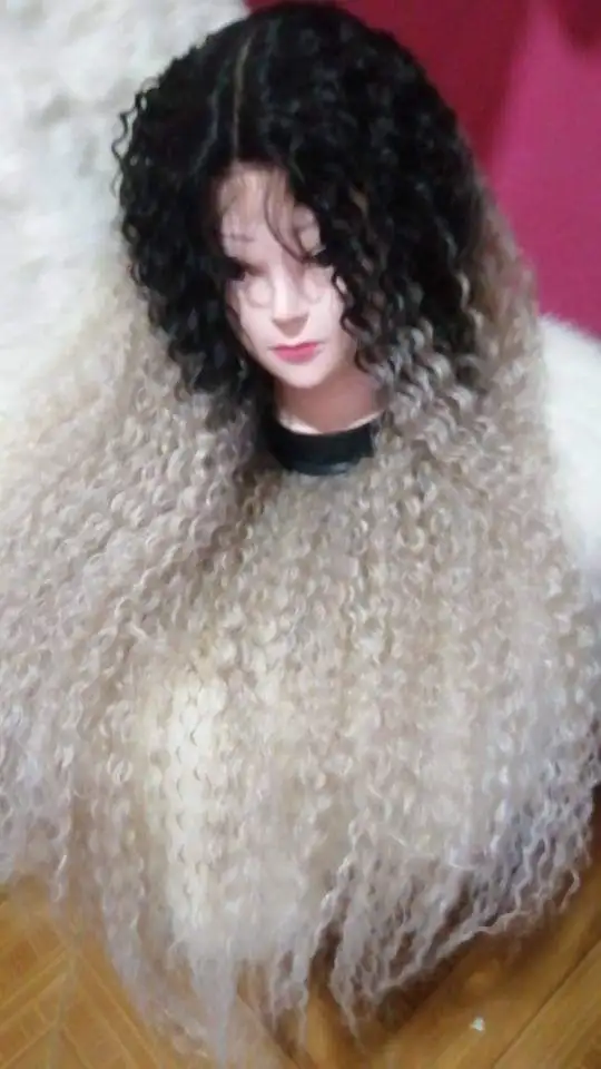 Благородный синтетический парик на шнурке для женщин, длинные волосы 38 дюймов, длинные кудрявые блондинки с темными корнями, волнистый термостойкий парик на шнурке
