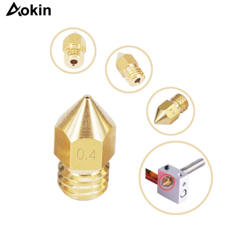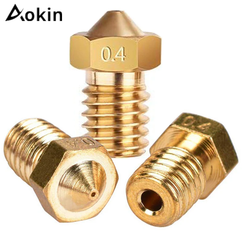 Насадка Aokin V5 V6, 5 шт., 0,4 мм, 0,3 мм, 0,2 мм, детали для медных 3D-принтеров, экструдер с резьбой, 1,75 мм, 3,0 мм, головка нити, латунные насадки