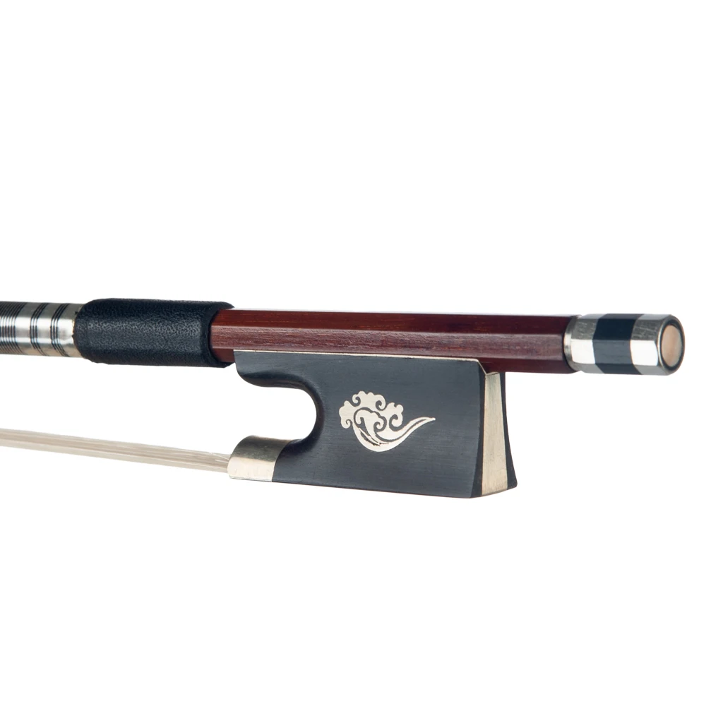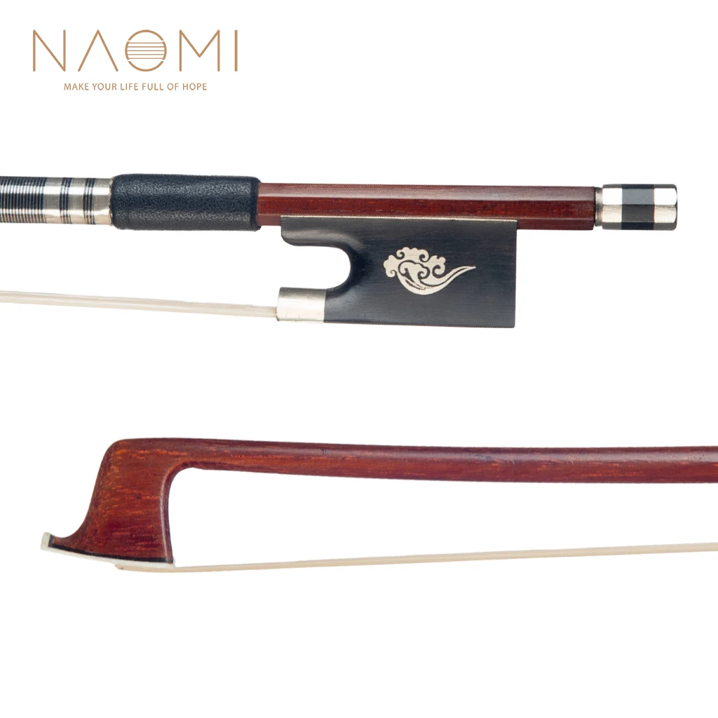 Лук для скрипки NAOMI из бразильской древесины 44, круглая палка для скрипки, белая монгольская Конская шерсть, эбеновая лягушка, хорошо сбалансированный лук