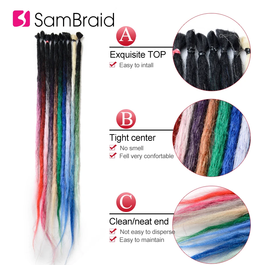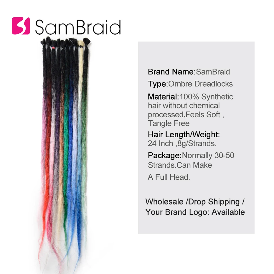 Sambraid синтетические волосы ручной работы дреды наращивание волос Вязание крючком плетение волос Розовый Омбре 24 дюйма 5 прядейупаковка для женщин