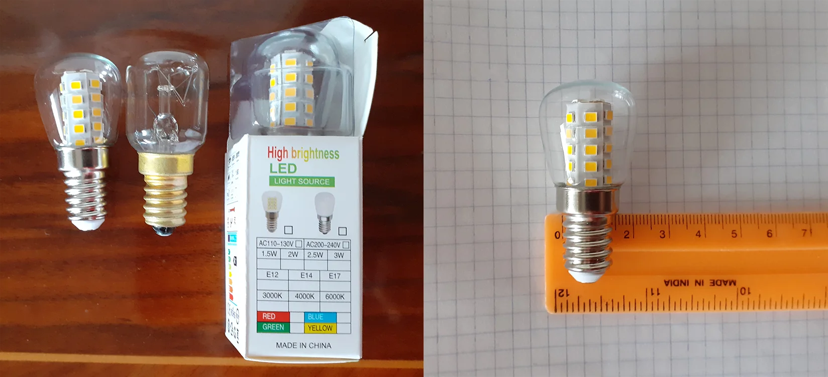 Я купил только светодиодные лампочки с прозрачной крышкой. Очень хорошая лампочка. Немного ярче, чем новая лампа накаливания (которая сильно нагревается). Холодная белая лампочка кажется немного ярче, чем теплая белая лампочка. Обе светодиодные лампы с теплым белым светом имели одинаковую интенсивность и цвет. Протестировано на швейной машине певца.