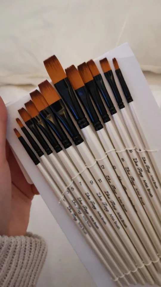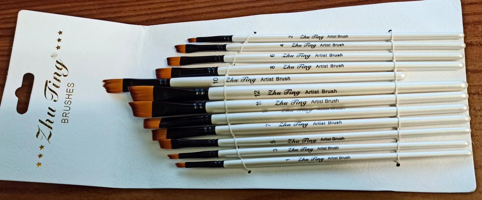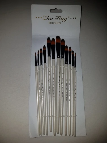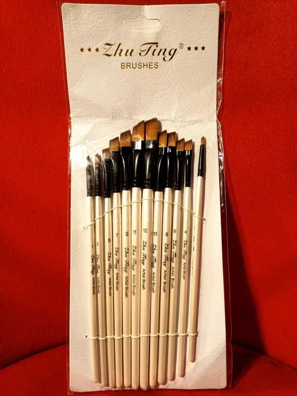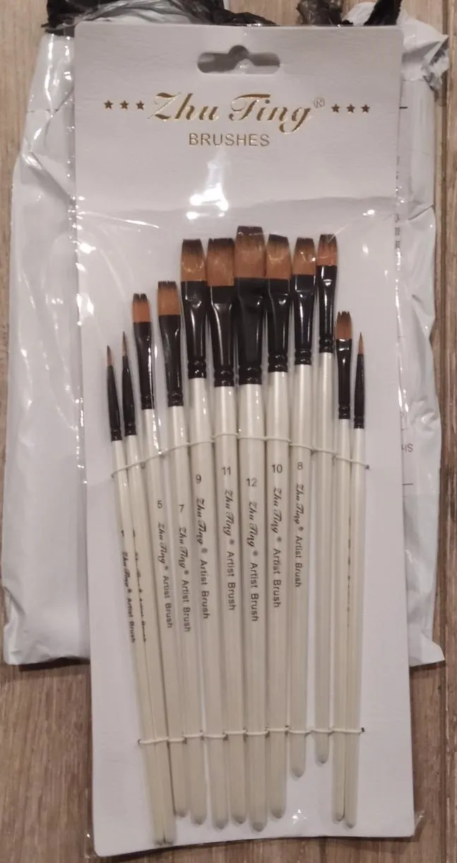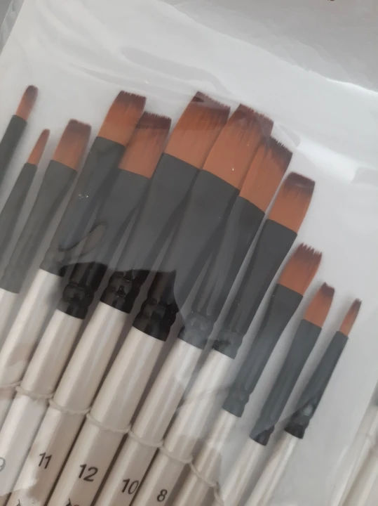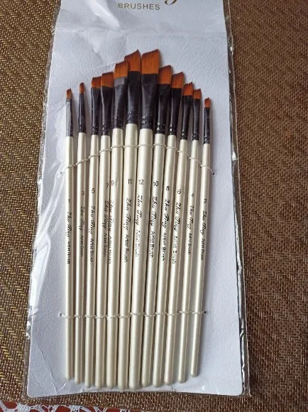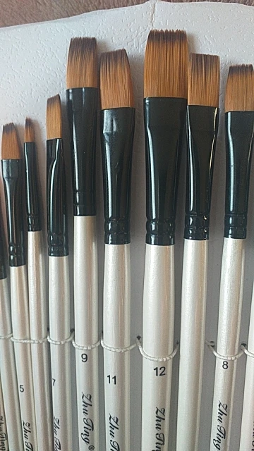 Товар соответствует описанию. Плоские синтетические кисти на кротком черенке. Самая маленькая №1 - 18 см (длина с ворсом), а самая широкая №12 - 22.2 см. Выглядят прилично. Подойдут как для масла, так и для акрила или темперы, гуаши. Дошло быстро. Состояние идеальное (ничто не замялось). Продавца рекомендую!