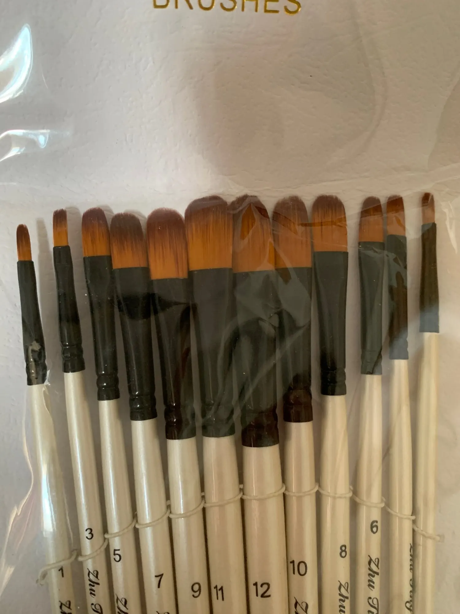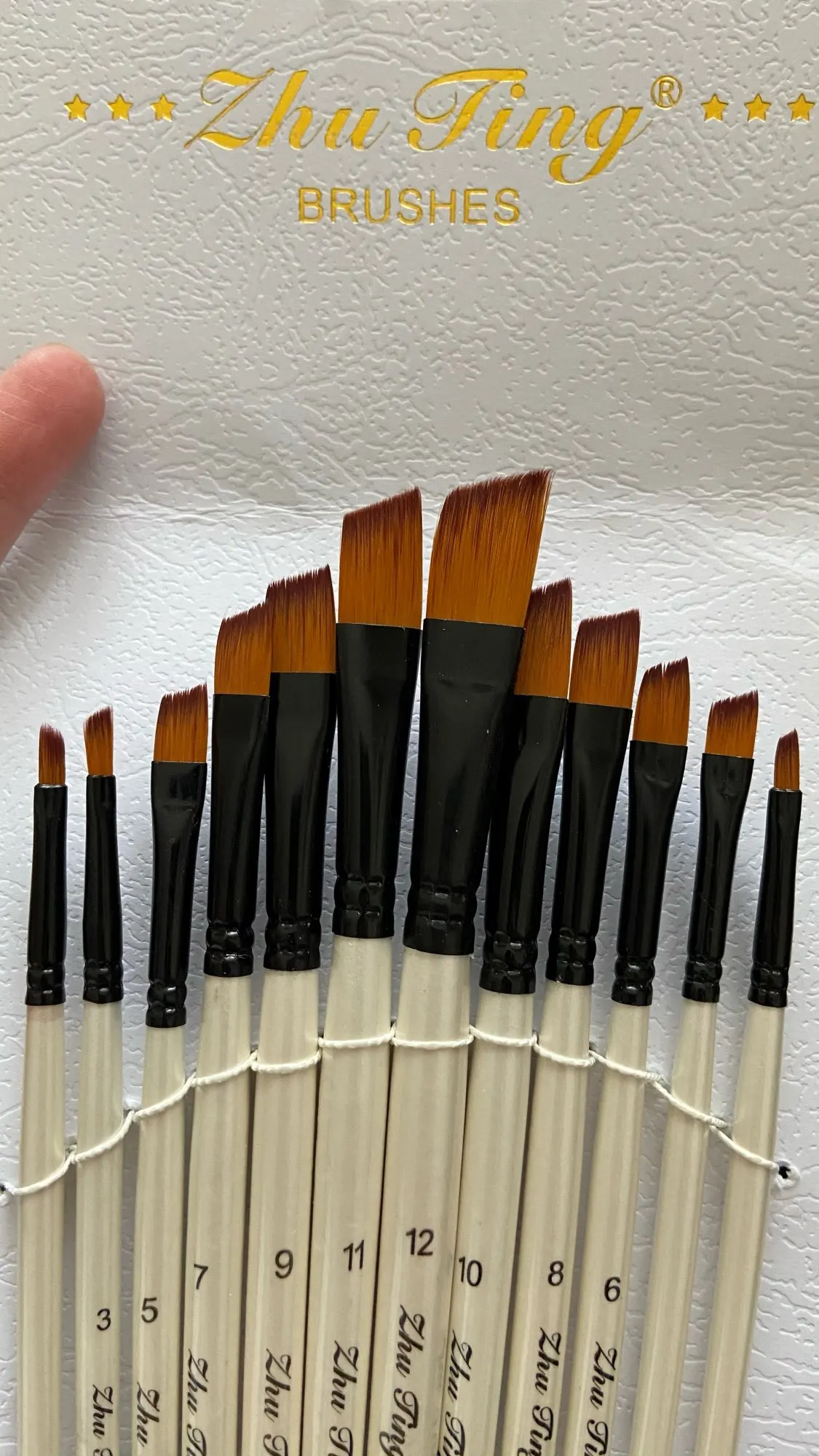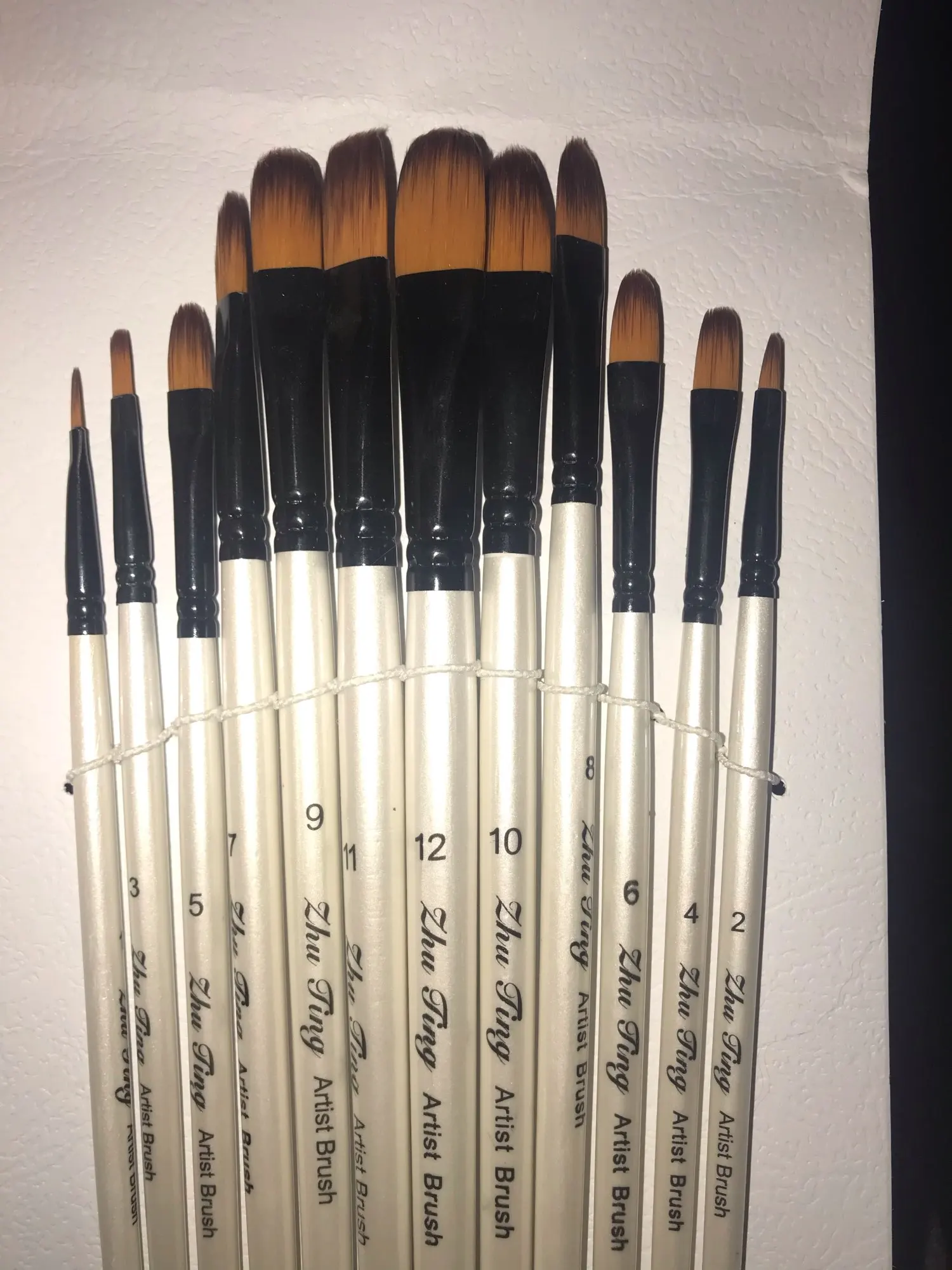 Товар соответствует описанию. Плоские синтетические кисти на кротком черенке. Самая маленькая №1 - 18 см (длина с ворсом), а самая широкая №12 - 22.2 см. Выглядят прилично. Подойдут как для масла, так и для акрила или темперы, гуаши. Дошло быстро. Состояние идеальное (ничто не замялось). Продавца рекомендую!