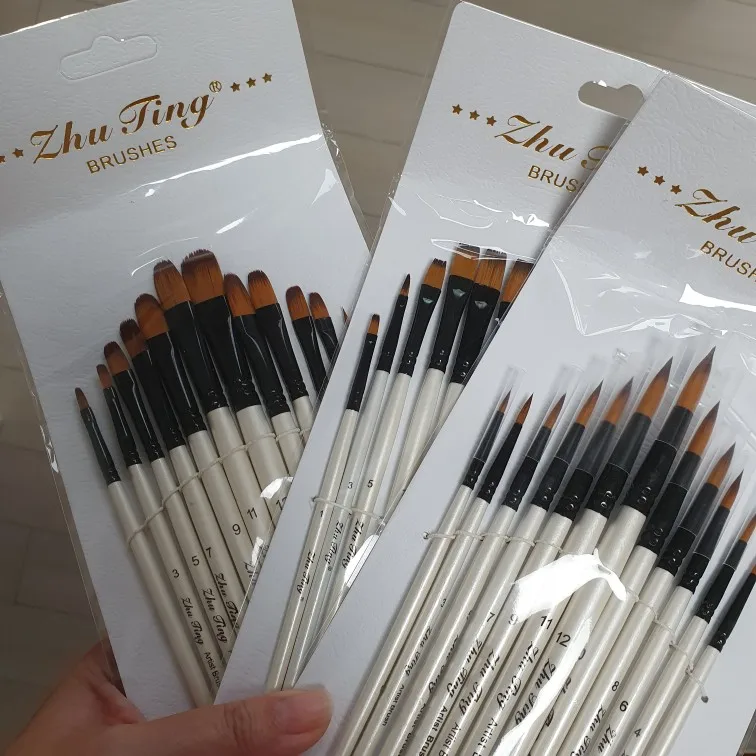 Нейлоновые кисти для рисования, 12 шт.компл., с деревянной ручкой, акварель, набор кисть для рисования, ручка, для самостоятельного обучения, масляная Акриловая картина