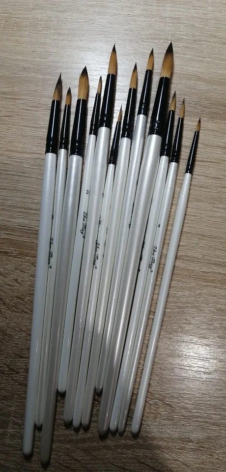 Вполне рабочие кисти для масла, акрила, темперы. Не супер долговечные, но какое-то время послужат при бережном уходе. Цена для такого набора более чем приемлемая.
