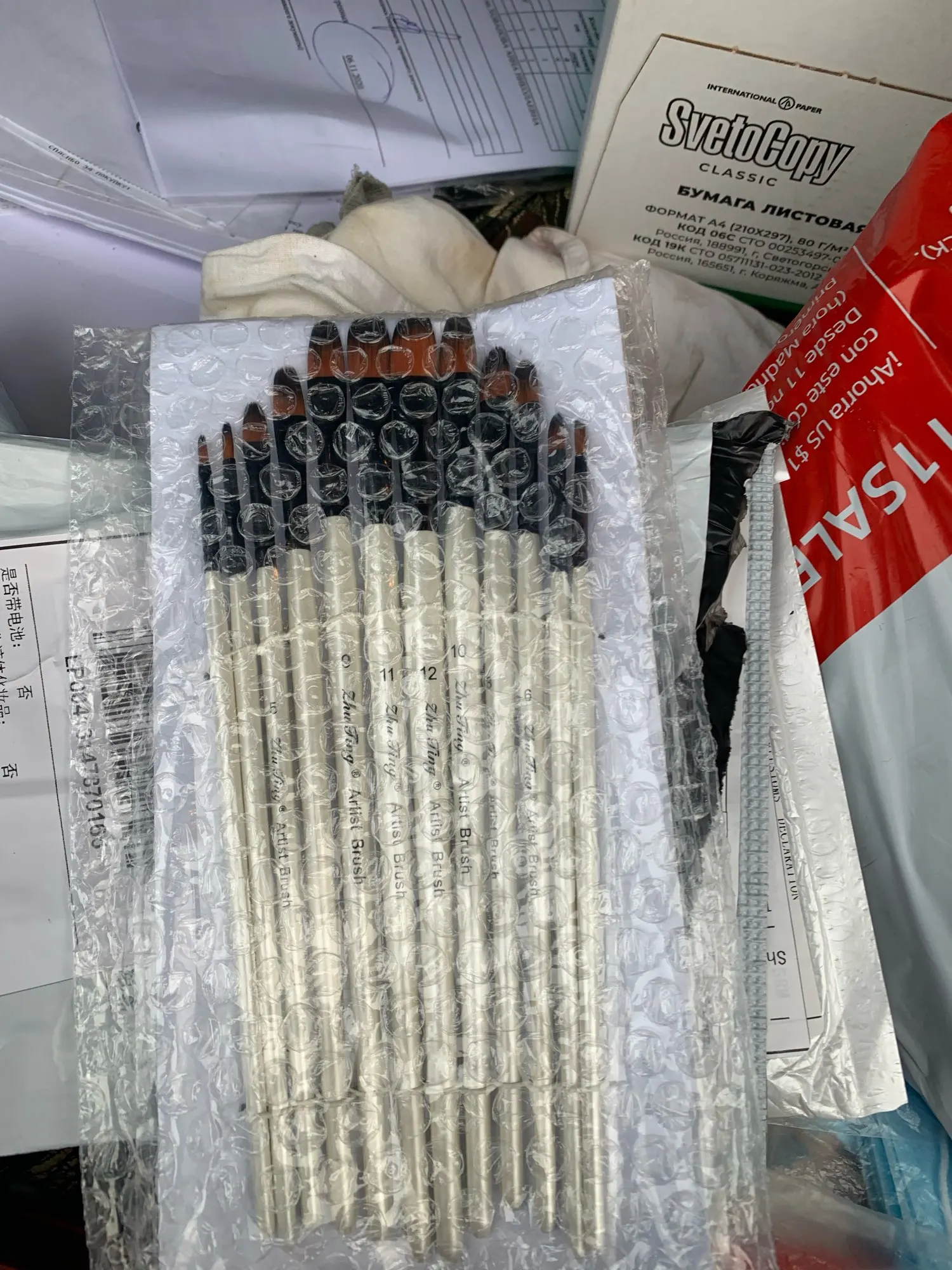 пришли сломанными 3 кисточки из 12, но продавец вернул за них деньги! Продавец очень порядочный! буду работать с ним еще!