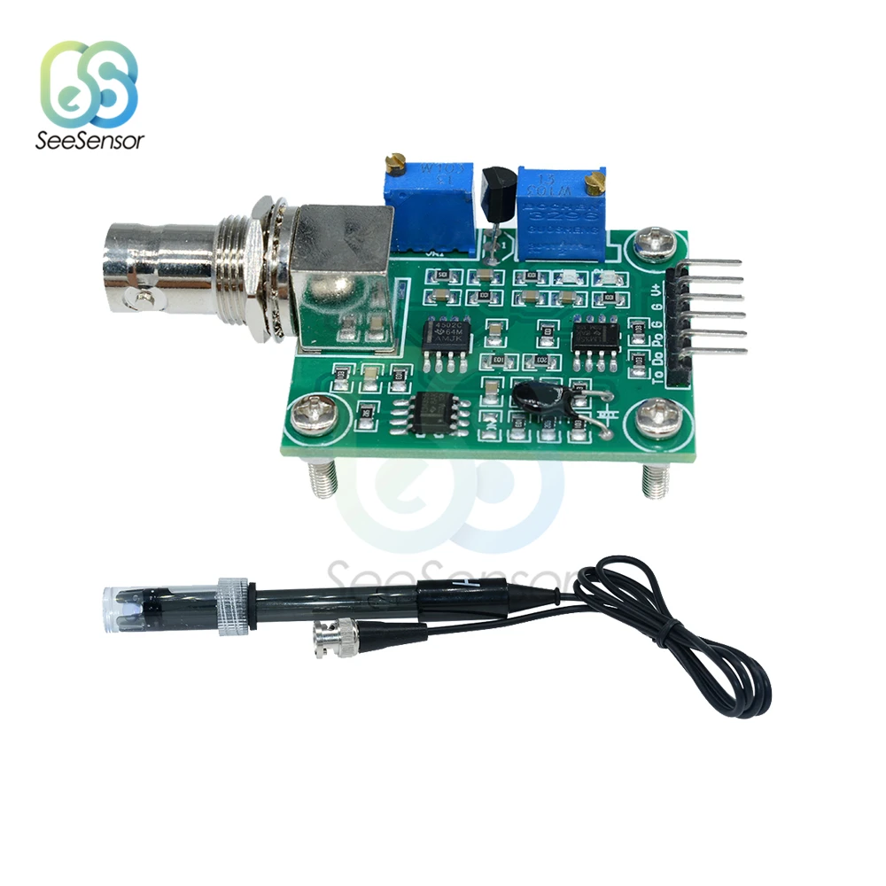Регулятор обнаружения PH жидкости 0-14, сенсорный модуль, контрольный измеритель, тестер + BNC PH электродный зонд для Arduino