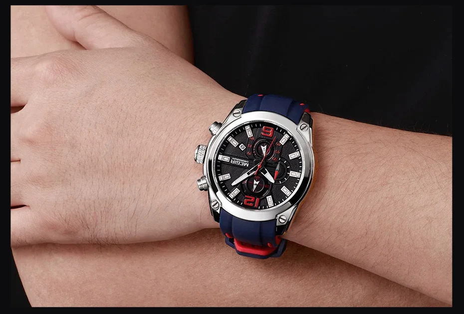 Мужские Аналоговые кварцевые часы Megir с хронографом и датой, светящиеся стрелки, водонепроницаемые наручные часы с силиконовым резиновым ремешком для мужчин