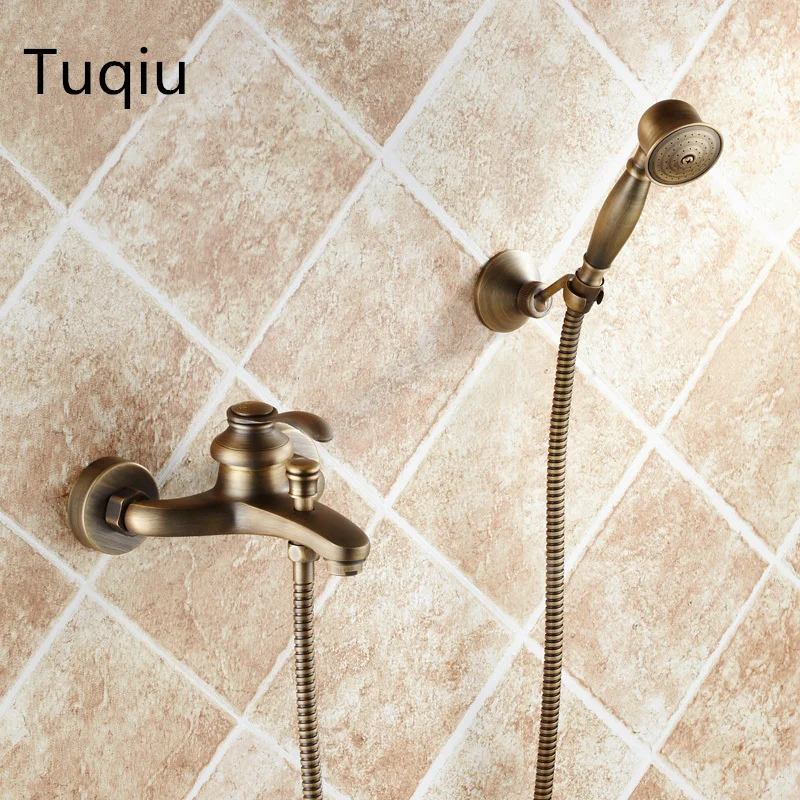 Смеситель для ванны, латунный кран с 2 режимами работы, настенный набор из античной бронзы, ручная Лейка для душа