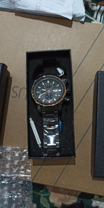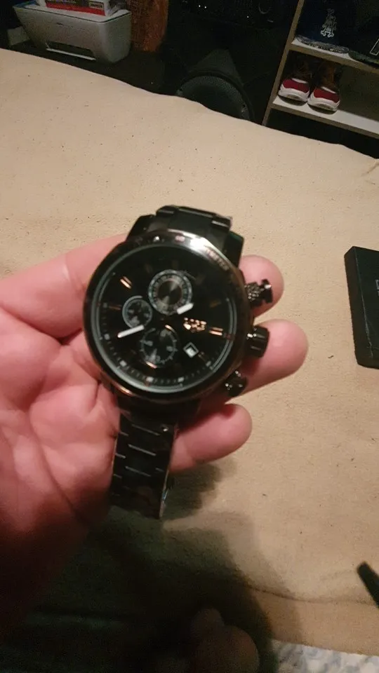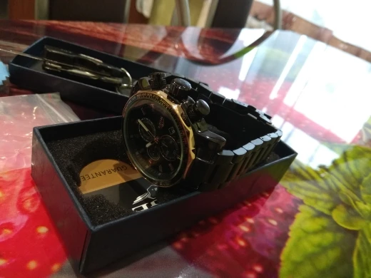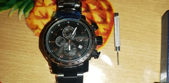 Были некоторые проблемы с доставкой из магазина в моей стране, но продавец отправил мне другие часы из Турции. Пришлось подождать еще пару недель, но часы действительно хорошие. Они действительно красивые, вес довольно много, есть все в коробке, чтобы укоротить браслет самостоятельно.
