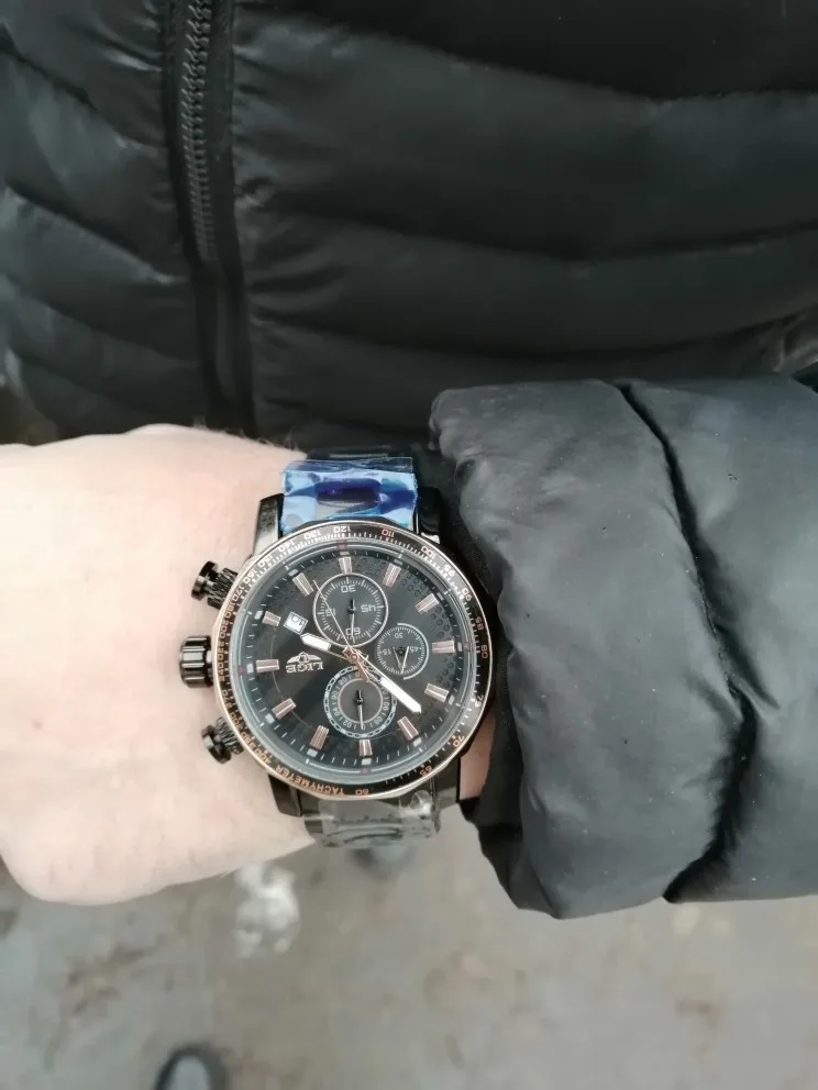 Шикарные часы, мужу понравились, сталь немного матовая, очень солидно смотрится, тяжёлые, приятные. все стрелочки работают, доставка меньше месяца