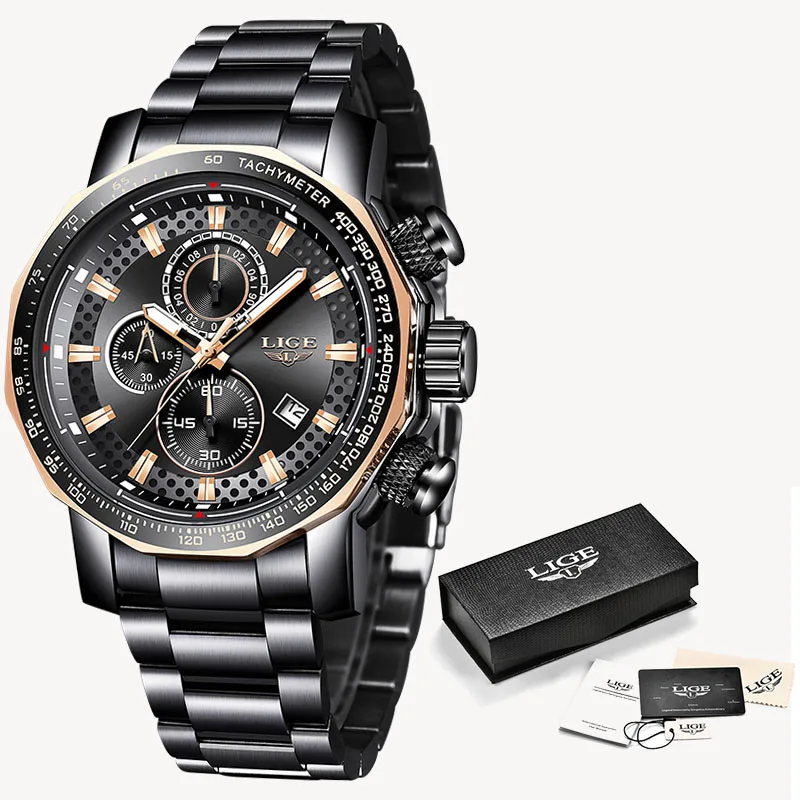 Relogio Masculino LIGE Новые спортивные мужские часы с хронографом Лидирующий бренд Роскошные полностью Стальные кварцевые часы водонепроницаемые часы с большим циферблатом для мужчин