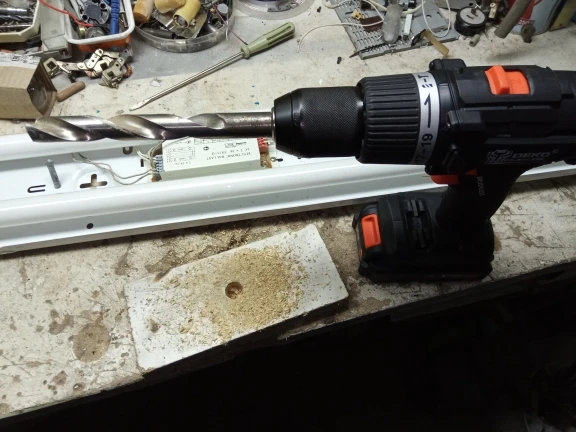 Переключатель запускает светильник КУ, обеспечивая светильник при работе дрели
