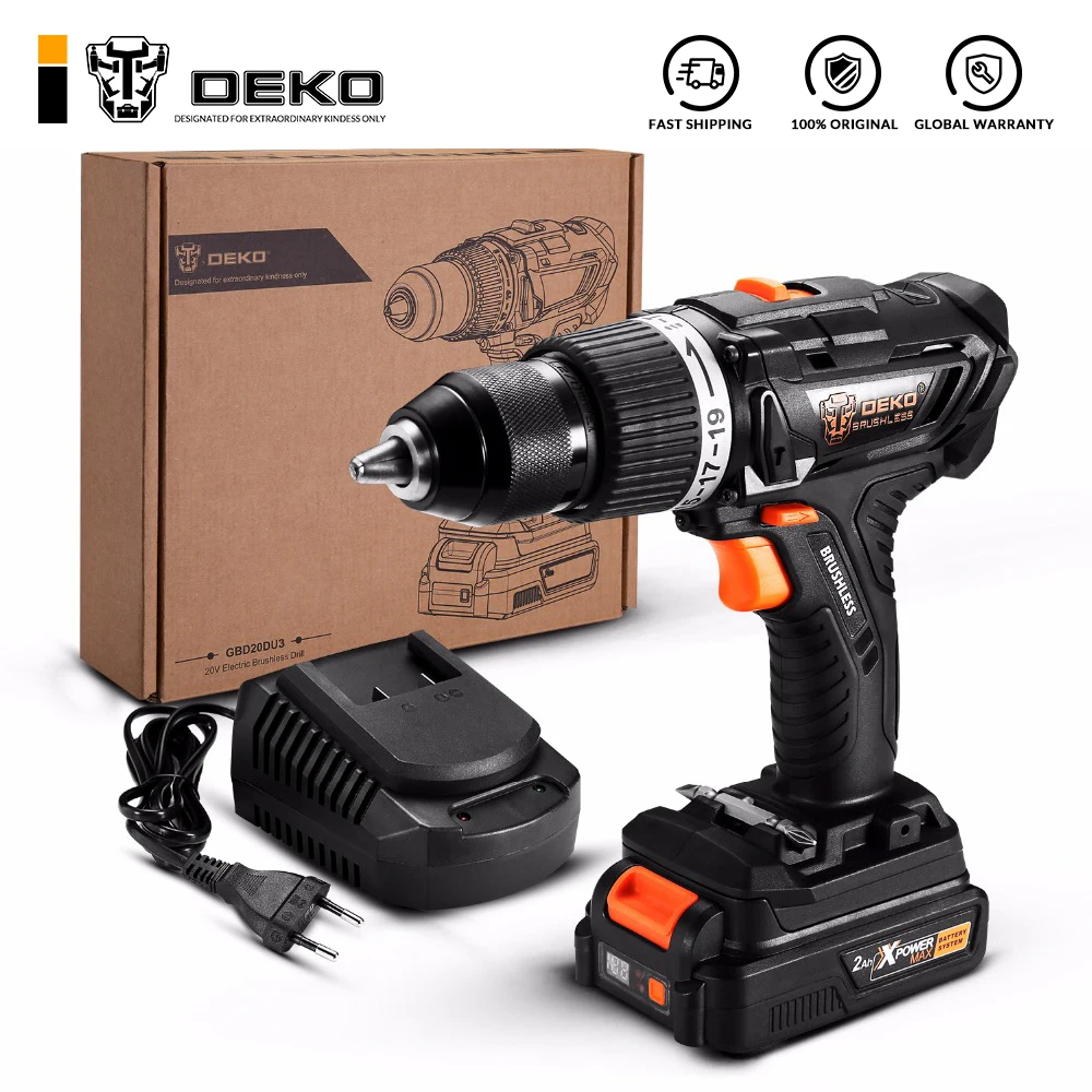 Беспроводная ударная дрель DEKO GBD20DU3 20 в макс. 1/2 дюйма с бесщеточным двигателем, максимальный крутящий момент 58 Н. m сочетает в себе Двойной диапазон скоростей и 19 + 1 позиционное сцепление в компактном размере, что обеспечивает точный контроль сверления дерева, металла, пластика и всех задач по отвертке. Макс. Диаметр сверления 13 мм для металла и 35 мм для дерева. Идеально подходит для сверления и крепления для таких применений, как обрамление, ремонт и установка шкафов. Аккумуляторная дрель DEKO GBD20DU3 с большим перфоратором в небольшой посылка вке станет отличной основой для любого профессионального подрядчика или коллекции электроинструментов DIYer.