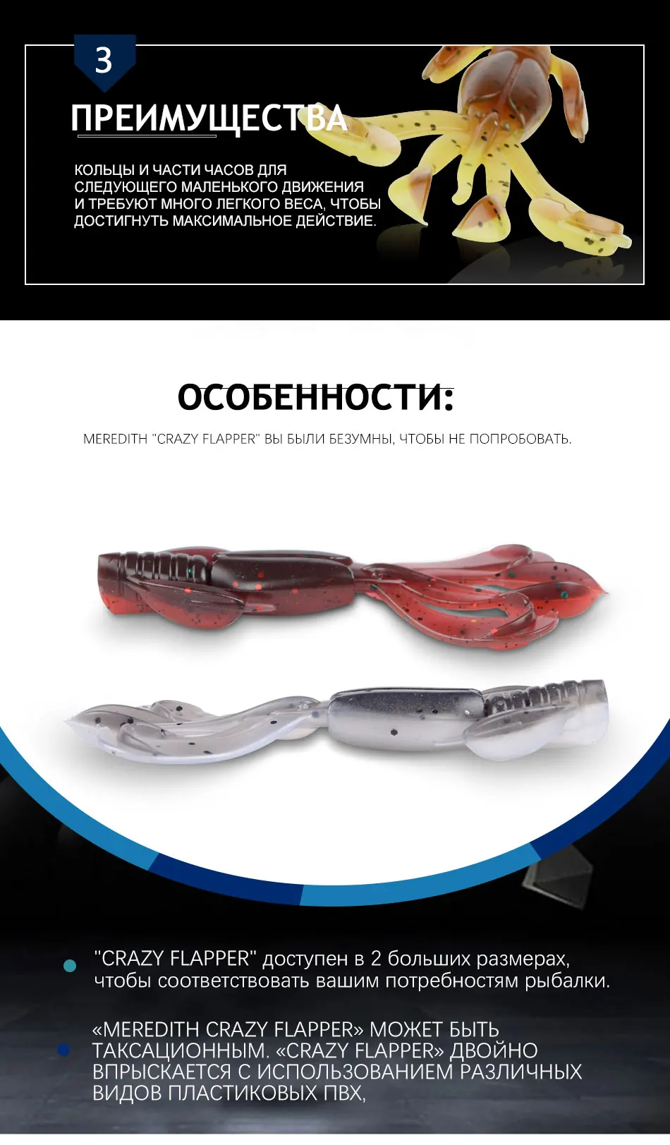 MEREDITH Crazy Flapper 70 мм 90 мм рыболовная мягкая приманка рыболовные приманки мягкие силиконовые приманки креветки окунь Peche снасти рыболовные снасти