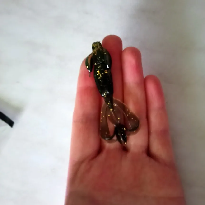 Спасибо продавцу! Забрал на кассе в "Пятёрочке" сборную посылку. Очень удобно! Шла 28 дней! Быстрая доставка! Платил $2,96(234,49 руб.), кэшбэк получу 9,5% -$0,27! Копия Keitech Crazy Flapper 3,6″. Качество супер! Соответствует описанию! 10 шт. в упаковке. Длина общ. 95мм, тело 45мм, вес 6,1-6,2г. Мягкая резина, но крепкая с прорезью под офсет.крючок! Без запаха! Тонет. В УФ светятся болотно-зелёным цветом (на фото не очень передалось). Хвост нужно разделить (см. последнее фото)! Отлично сочетается с любым монтажом! Хорошо ловит щуку на двойном подбросе! Рекомендую приманки и продавца! Покупал здесь кучу резины, вся рабочая! Всем НХНЧ!