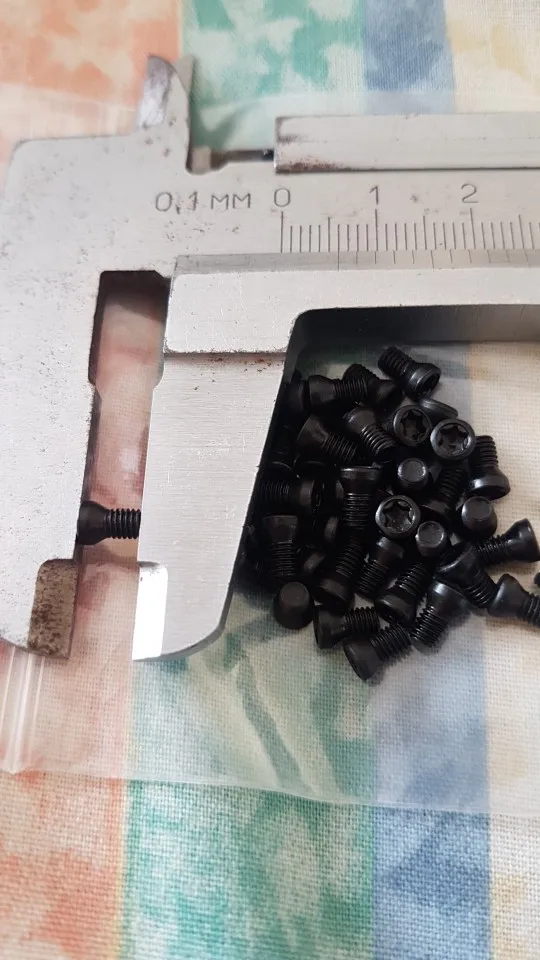 Винты м2х4. Брал к токарной державке. Всё в норме. Ключом torx6 крепит пластинку.