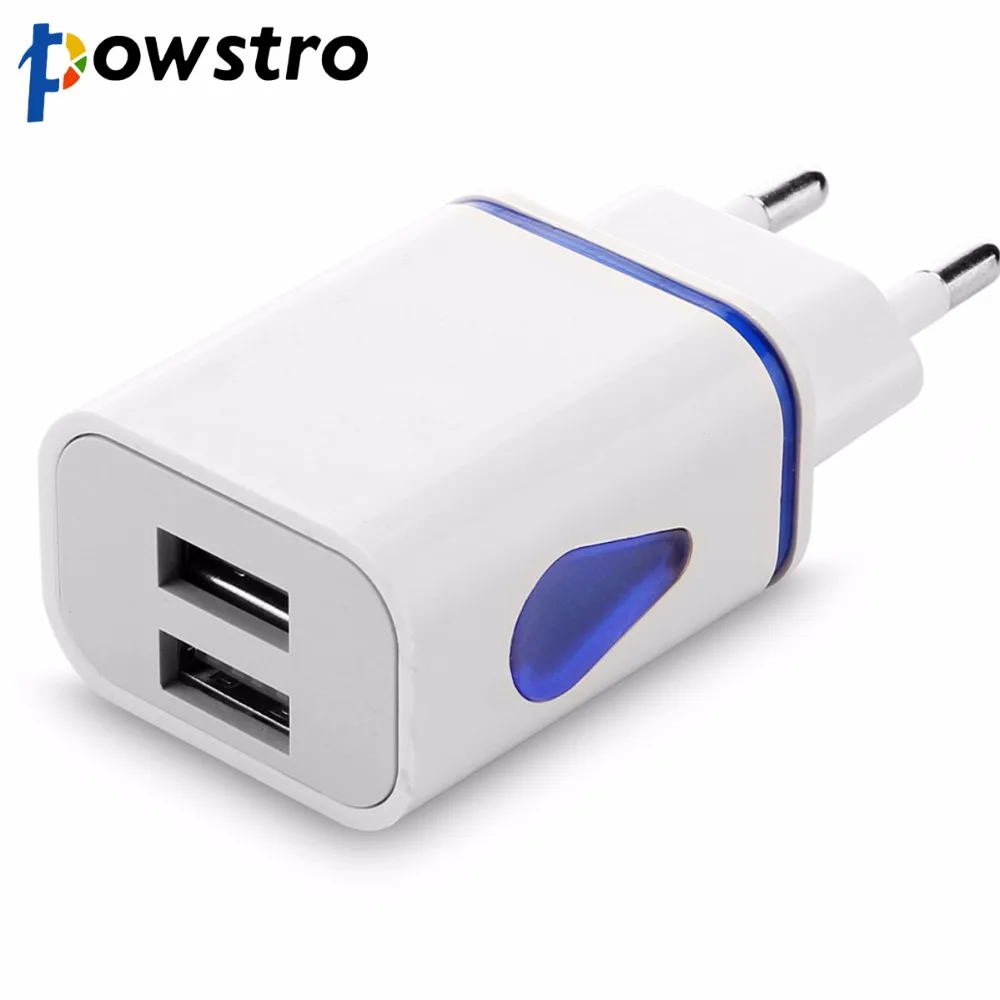 Зарядное устройство Powstro с 2 USB-портами и светодиодной подсветкой, настенное домашнее дорожное зарядное устройство с 2 USB-портами, адаптер переменного тока для iPhone 8, 7, 6S Plus, Samsung S8, S7