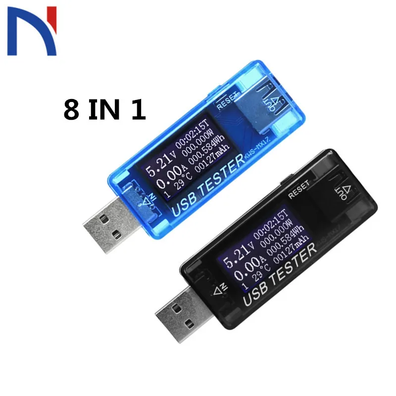 8 в 1 ЖК-дисплей QC 2,0 3,0 USB детектор напряжения тока цифровой вольтметр Амперметр зарядное устройство тестер емкости Измеритель внешний аккумулятор черный синий