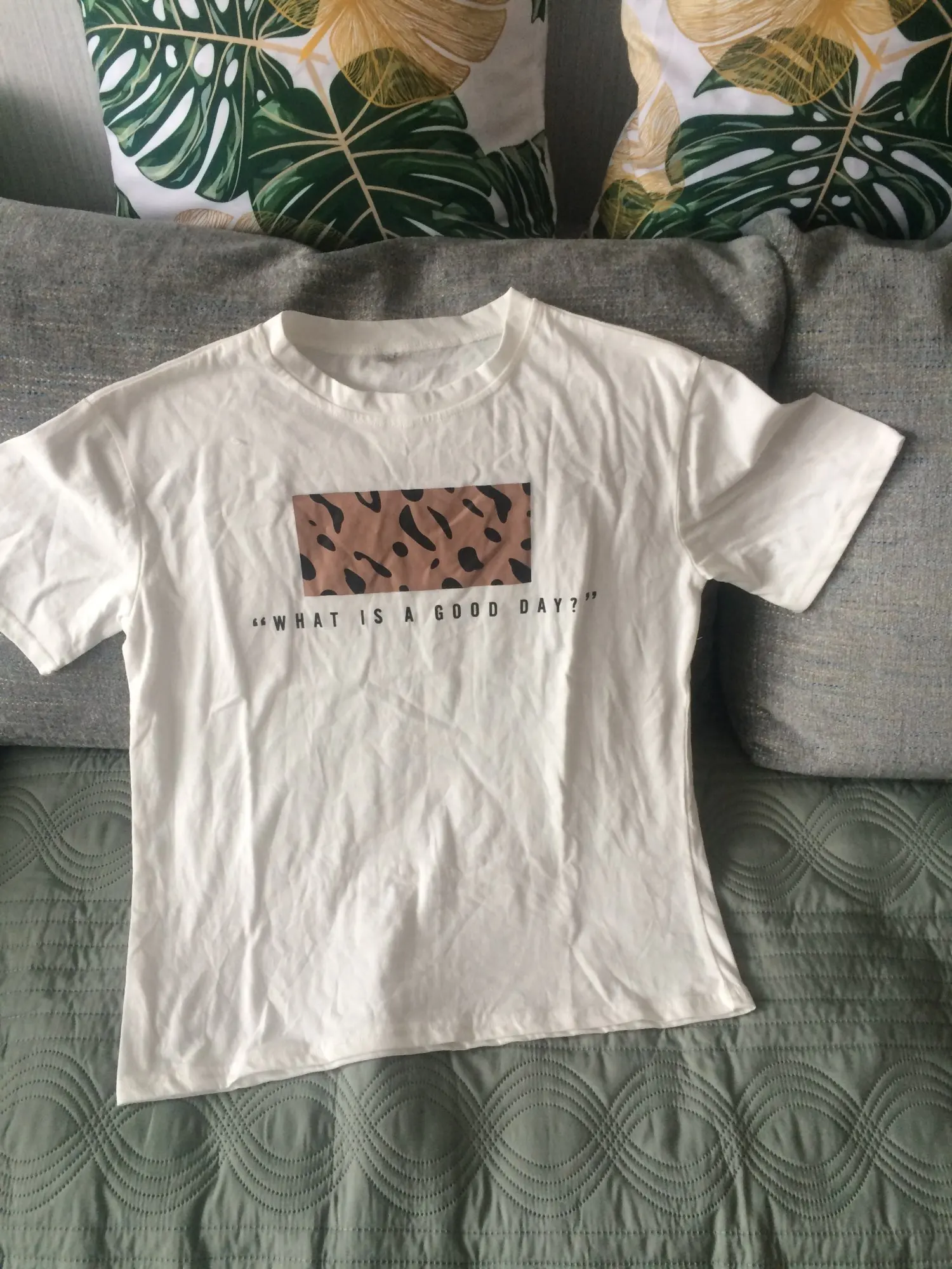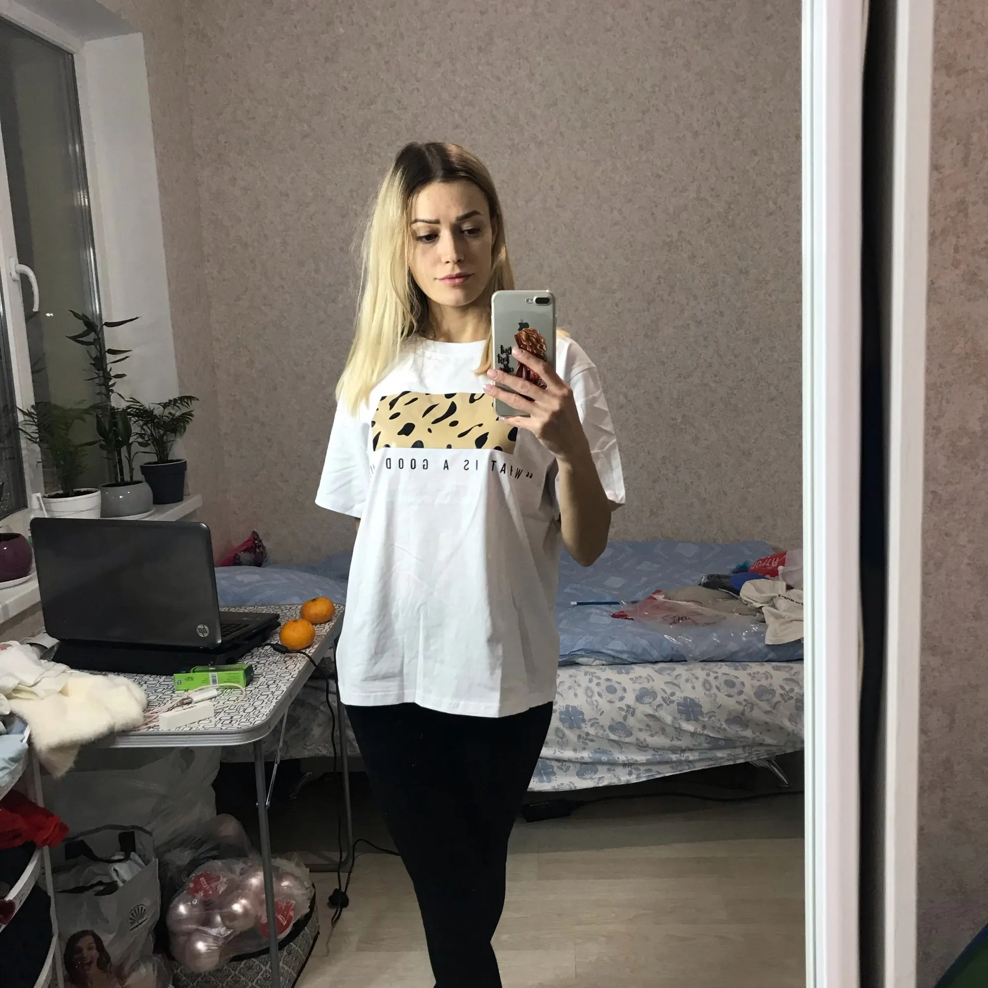 Футболка крутая, качество очень хорошее, я довольна покупкой, на свой 42 размер, взяла М,
