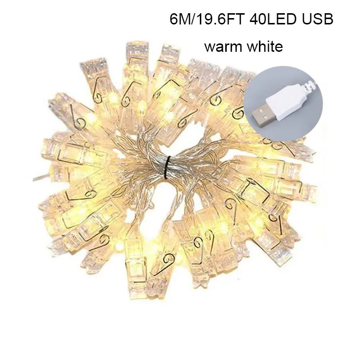 Новогодняя гирлянда с прищепкой для фотографий, светодиодная гирлянда с аккумулятором, USB, 5 в постоянного тока, Рождественская гирлянда праздничное украшение для вечеринки, свадьбы