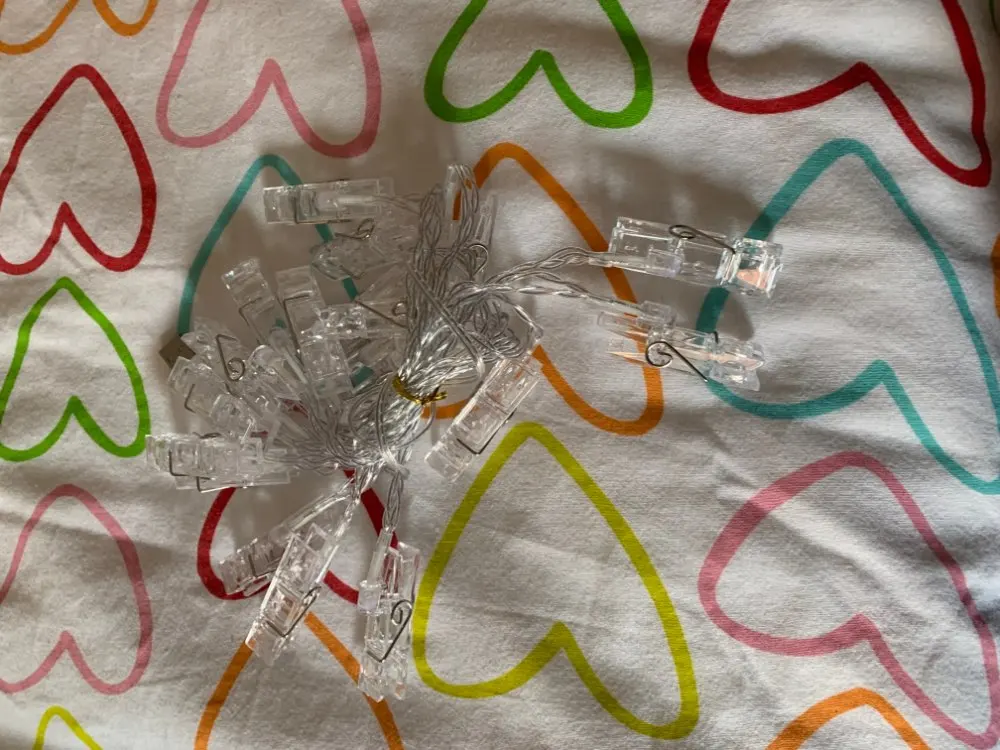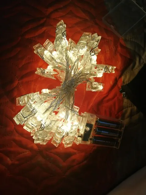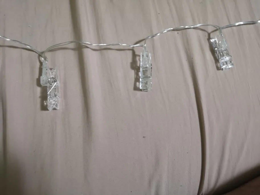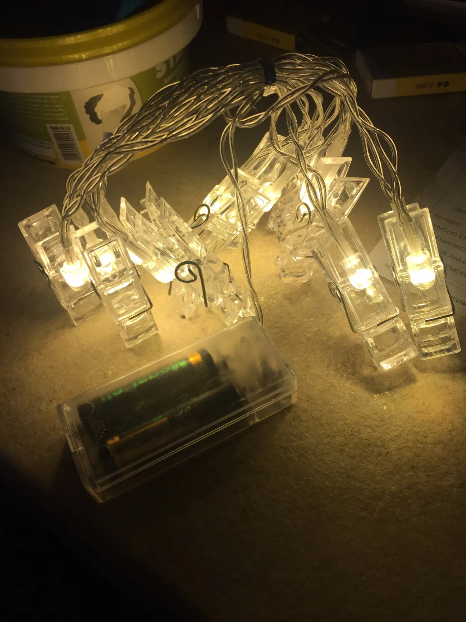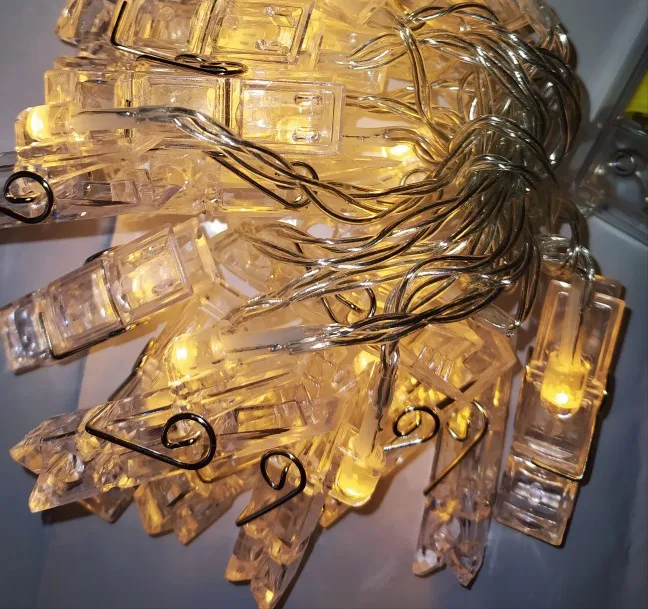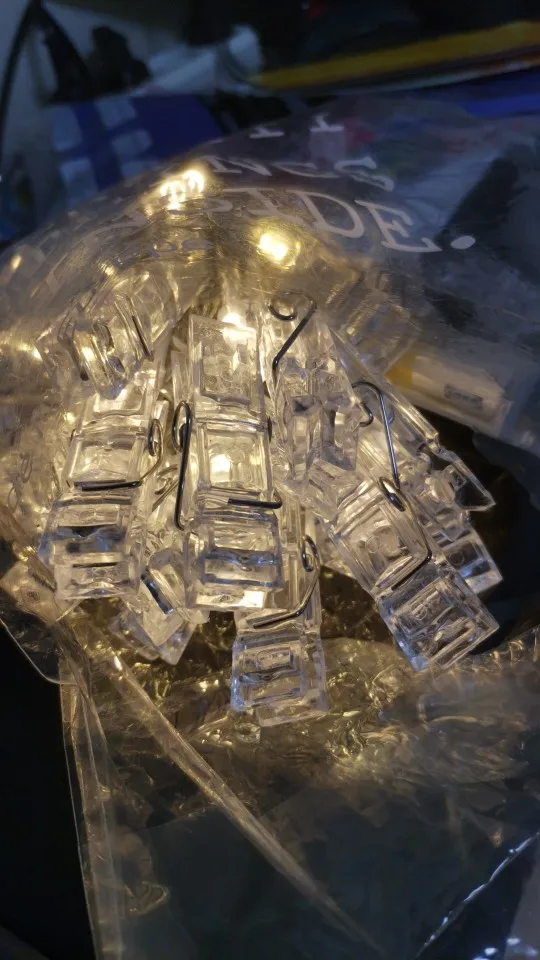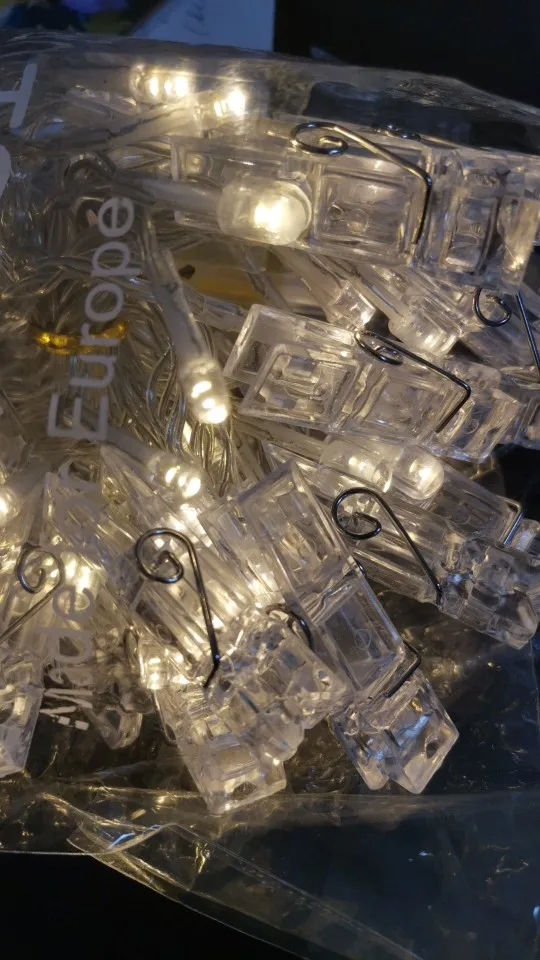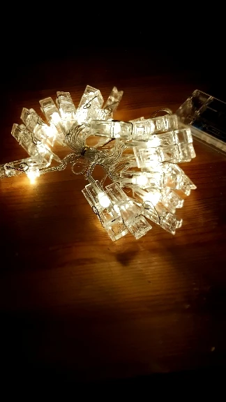Заказала 1.5 м от двух батареек АА. Все работает. Прищепки очень плавные, кнопка тоже. Переживала, что пластик будет мутный, но он как стёклышко). Светодиоды закреплены в «кармашке»(последнее фото), выглядит аккуратно. На фото формат Polaroid. Пока поверхность фото не повредила, дополню если что.