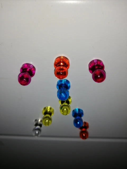 Цвета хорошие, но магниты маленькие и не питаются и держат только несколько страниц бумаги. Не может повесить больше одной или двух клавиш, когда наклеивается на стальную коробку. Подходит для подвешивания маски.