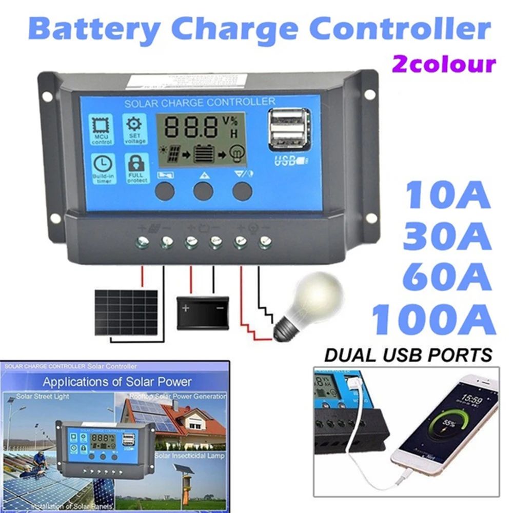 100A60A30A 12В 24В Автоматический Контроллер заряда PWM контроллеры ЖК-дисплей двойной USB 5В 2А Выход солнечная панель PV регулятор домашний аккумулятор