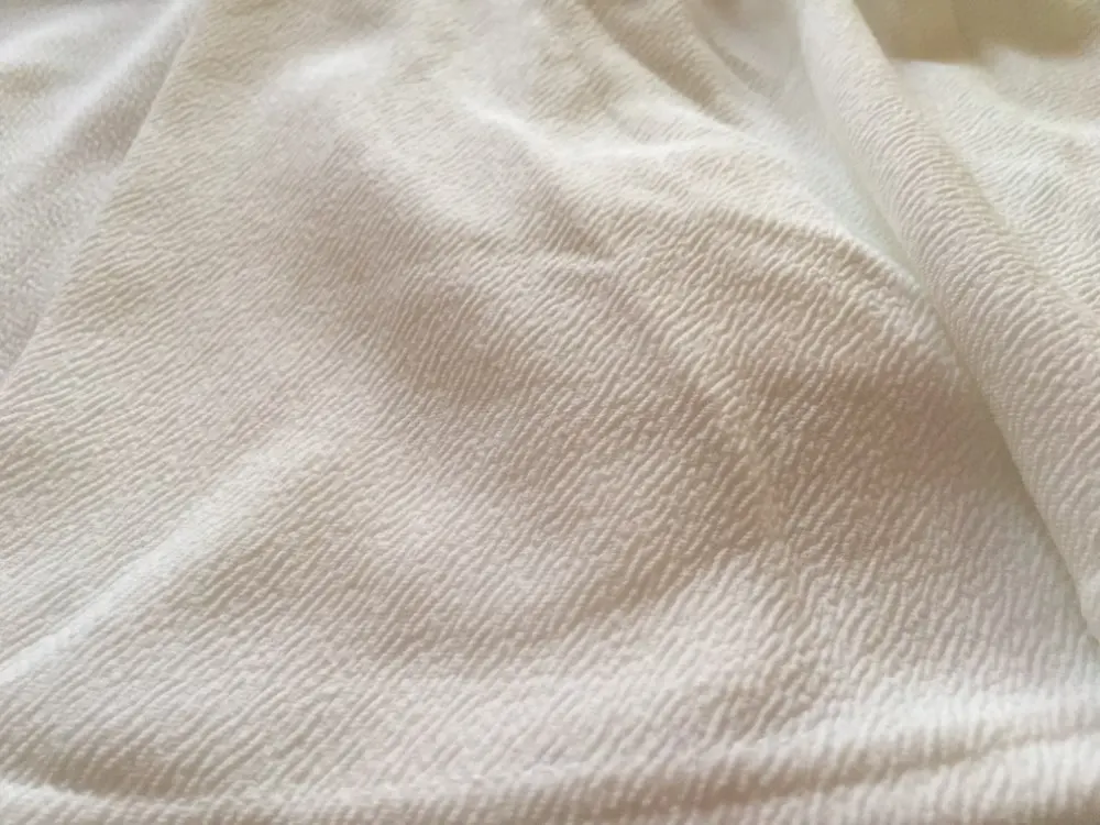 на размер 42-44 подошла идеально. ткань не сильно тянется, на ощупь хорошая синтетика.