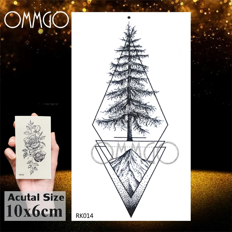 Татуировки OMMGO из черного ромба и сосны, временные геометрические треугольные тату-наклейки для мужчин, женский боди-арт, Мужское боди-арт, искусственная татуировка на руку и ногу своими руками