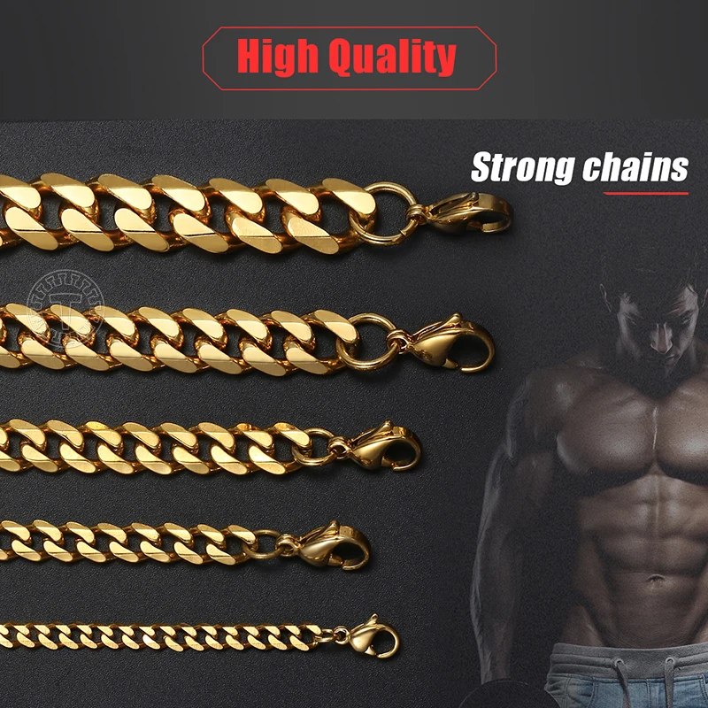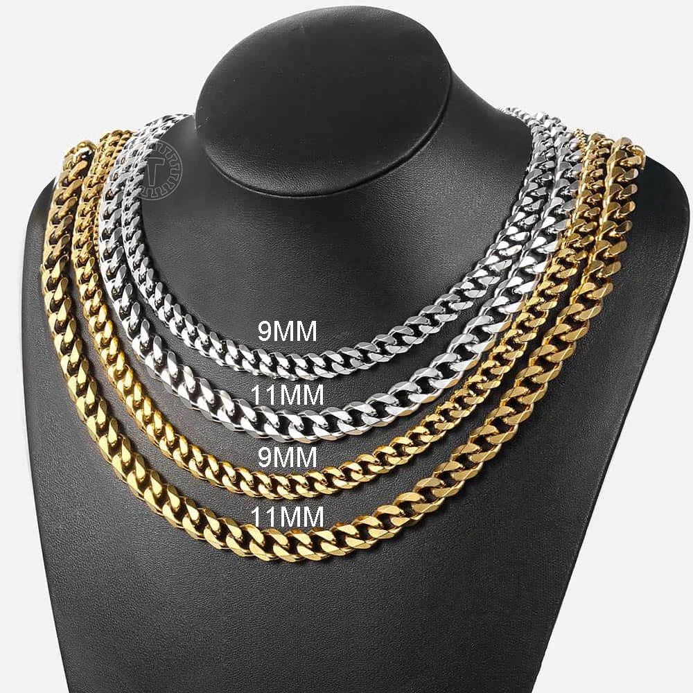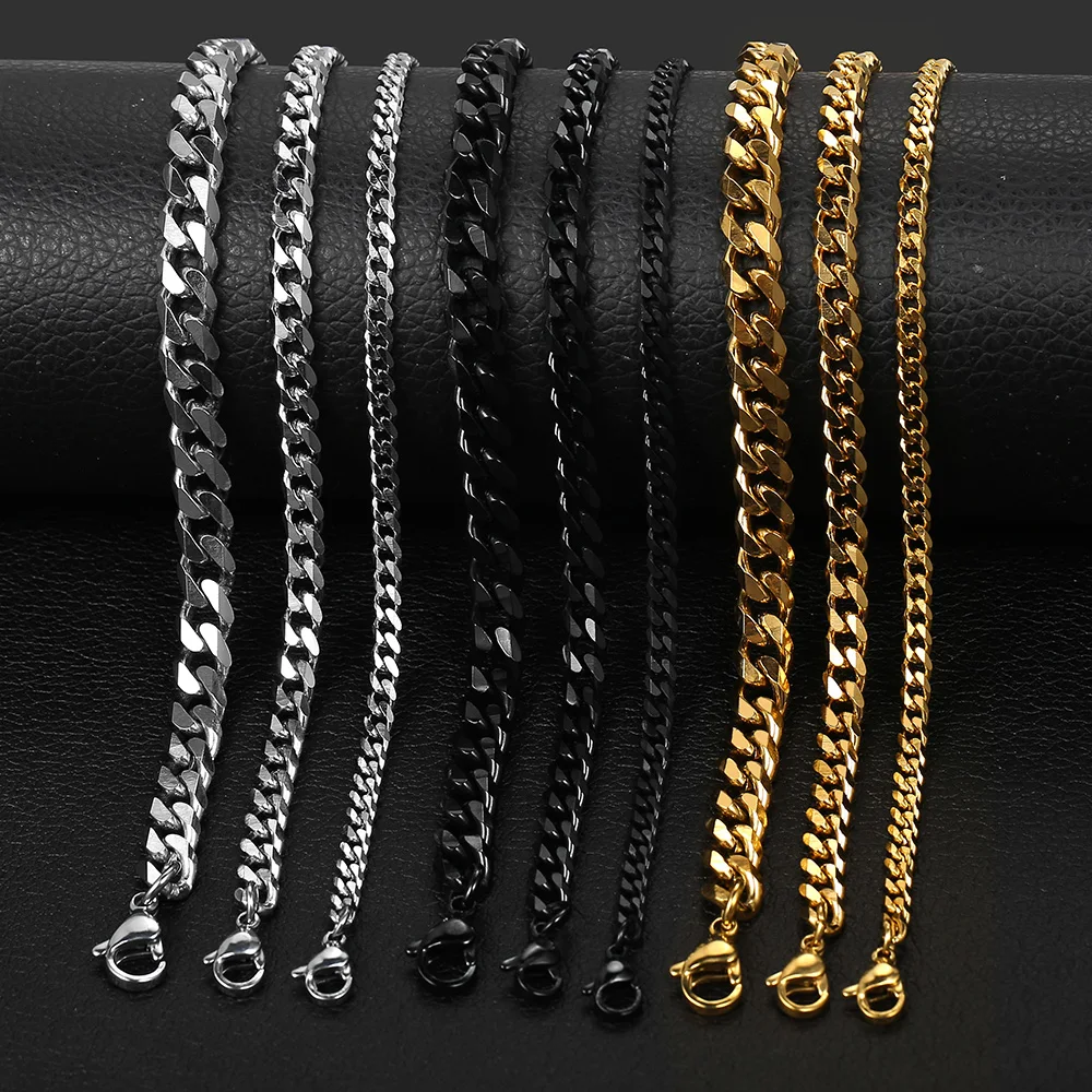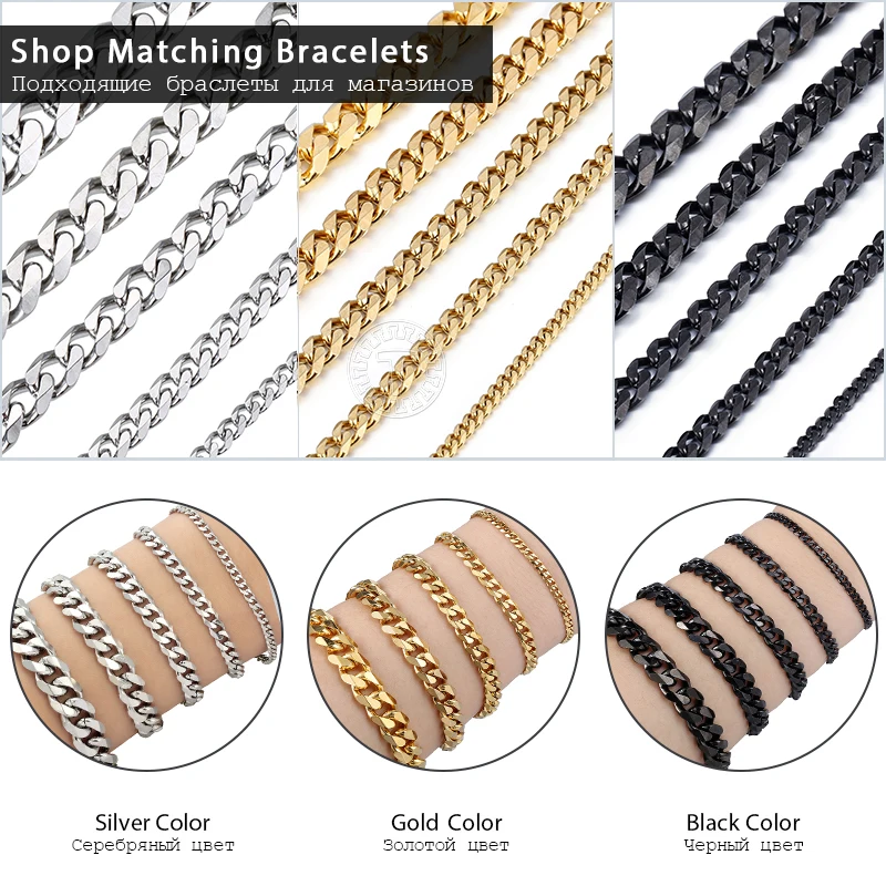 Ожерелья для мужчин и женщин, черные, золотые, серебряные панцирные кубинские цепи из нержавеющей стали, мужское ожерелье, ювелирные изделия 357 мм LKNM08
