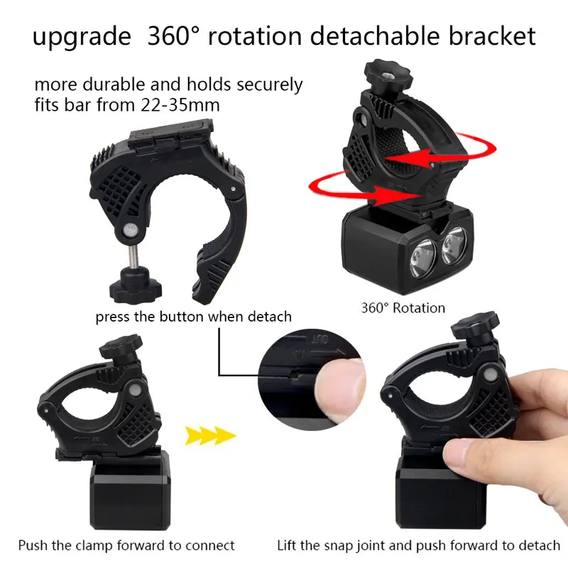1. Яркий светодиодный светильник 20 Вт, высокая яркость, длительный срок службы.2. Принимаем высококачественный полимерный литиевый аккумулятор, время зарядки может достигать 1000 раз;3. Специальный алгоритм, используемый в цепи привода постоянного тока, способен поддерживать превосходный баланс между яркостью и тепловым охлаждением;4. Степень защиты IP65, может адаптироваться ко всем видам сложной наружной среды;5. Различные узоры и дополнительная яркость.6. Режим освещения:Режим переключения:Пресс-переключатель: низкий-средний-высокий-стробоскоп-SOS, в соответствии с этим циклом;7. Индикатор заряда батареиИспользование продукта:Три ярких света: мощность> 70;Два светильник: 70%> Емкость> 40%Один светильник: 40%> емкость> 10%;Один светильник: Емкость <10%Специфика:1. Модель: высокий светильник2. Серия: велосипедная лампа3. Светодиодный: 20 Вт 2x XM-L T6 светодиодный4. Батарея: Встроенный высокопроизводительный полимерный литиевый аккумулятор5. Яркость: 1600lm (высокий светильник)6. Время работы: высокая светильник: 1,5 часов (сильная светильник)7. Диаметр: 31 (Д) X 50 (в) x 40 (Ш)8. Вес: высокий светильник 45 г9. Высокий светильник: авиационный алюминий 606310. Цвет: черный11. Тип крепления: крепление с вращением на 360 градусов