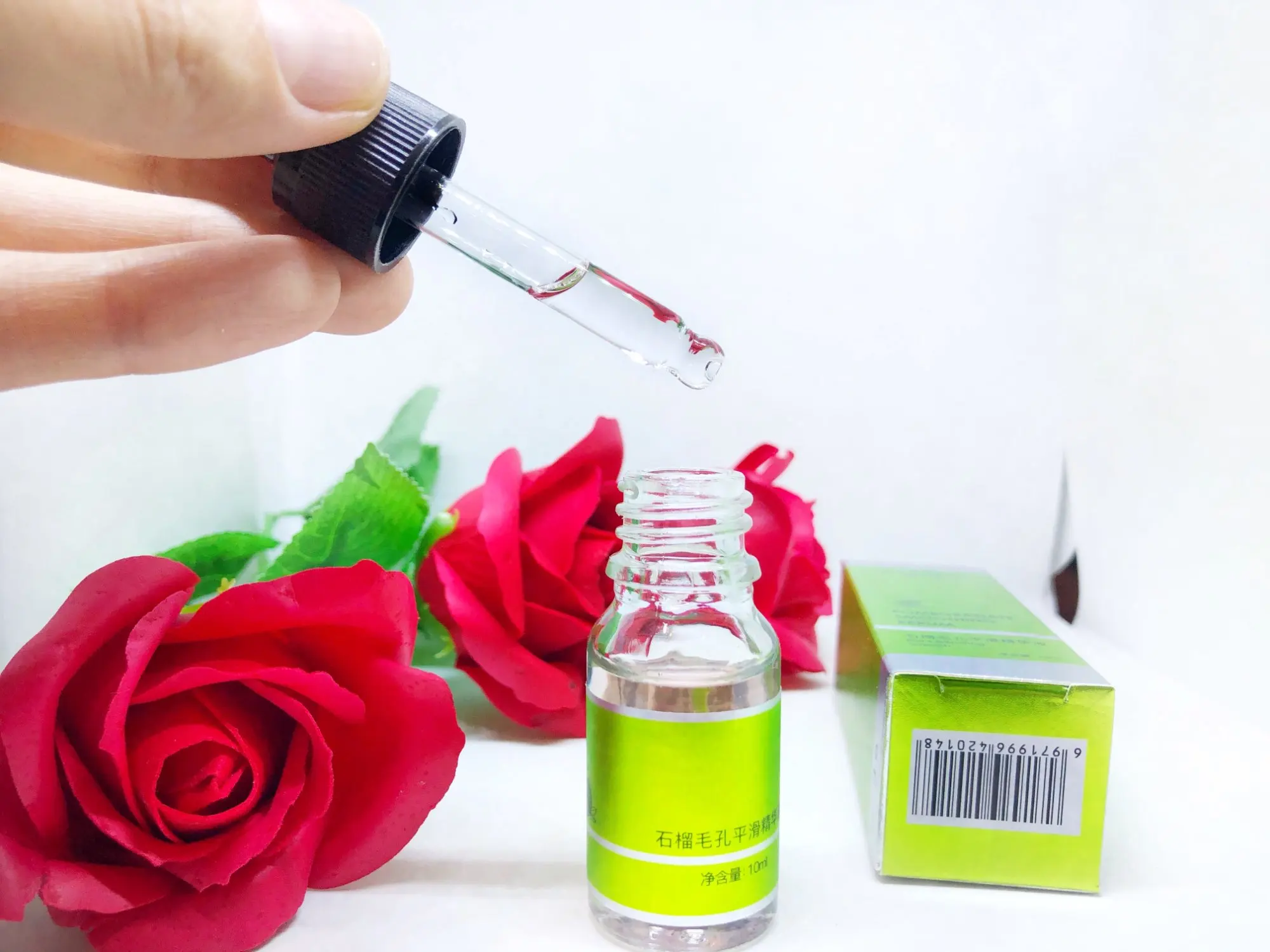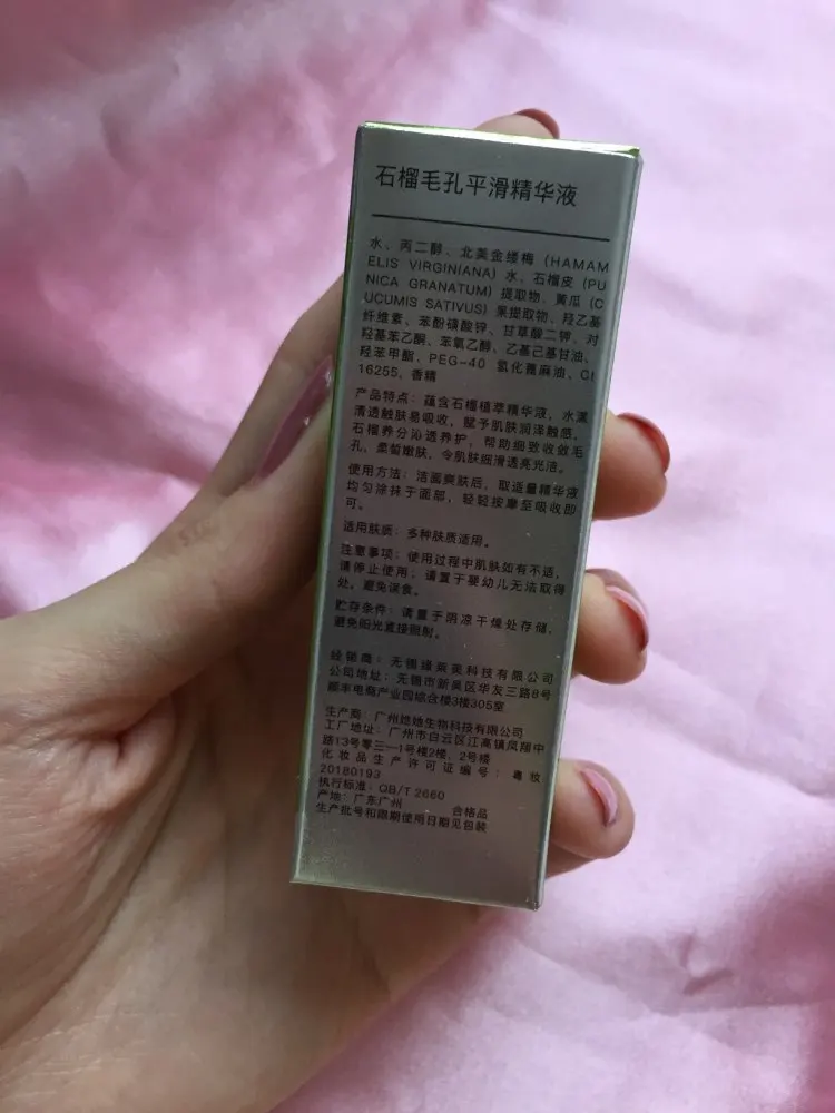 Эссенция для сглаживания пор содержит гамамелис, экстракт кожуры граната, экстракт плодов дыни, цинк, кунжутное масло, эссенцию растительного экстракта лотоса шикван, и другие сопутствующие компоненты. Способ применения: после очищения и тонизирования возьмите необходимое количество эссенции, равномерно нанесите и нежно массируйте до впитывания. до отзыва пользовалась примерно месяц. Эффект понравился настолько, что заказала еще, кожа действительно становится ровнее и мягче. запакована в слюду, срок годности на упаковке.