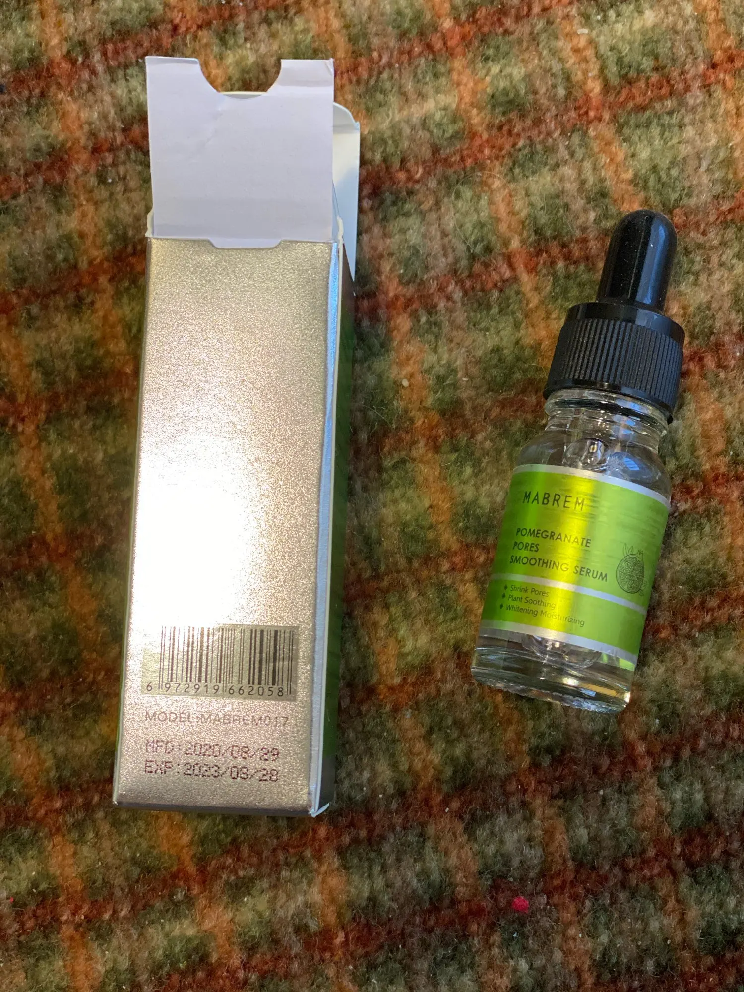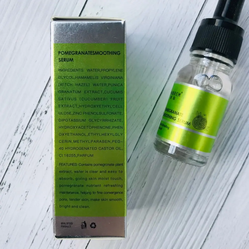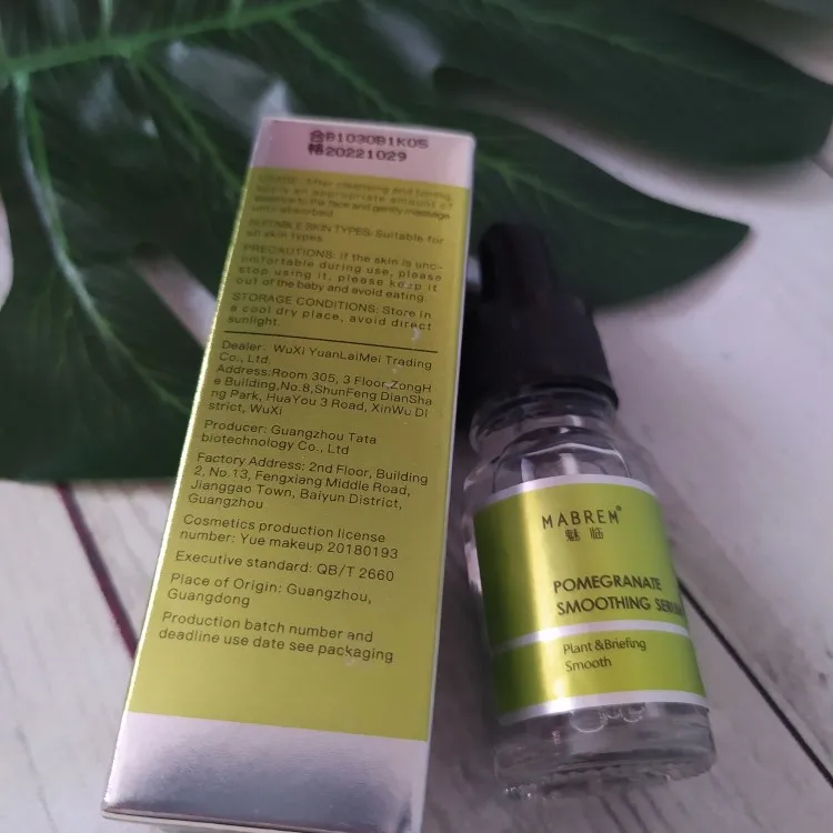 Гранатовая сыворотка для лица Бренд MABREM Цена $ 4.23 Обьем 10 мл Доставка заняла около месяца (г. Днепр, Украина). Посылка приехала целая. Содержит экстракт граната, легко впитывается, увлажняет и освежает кожу, делая ее более гладкой и упругой. Подходит для любого типа кожи. Не вызывает аллергии. Сыворотка находится в стекляном флаконе с пипеткой. Имеет слегка уловимый запах. Наносить на очищенную кожу лица, массирующими движениями равномерно распределить, дождаться впитывания. Не смывать.