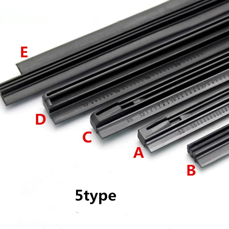 5 видов резиновых лент для стеклоочистителя на фотографиях ниже: