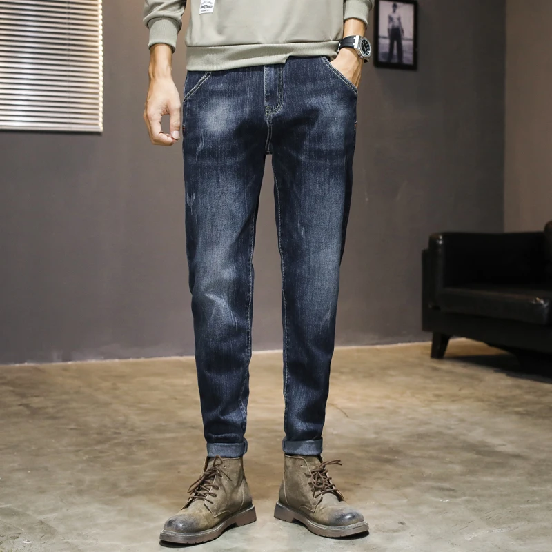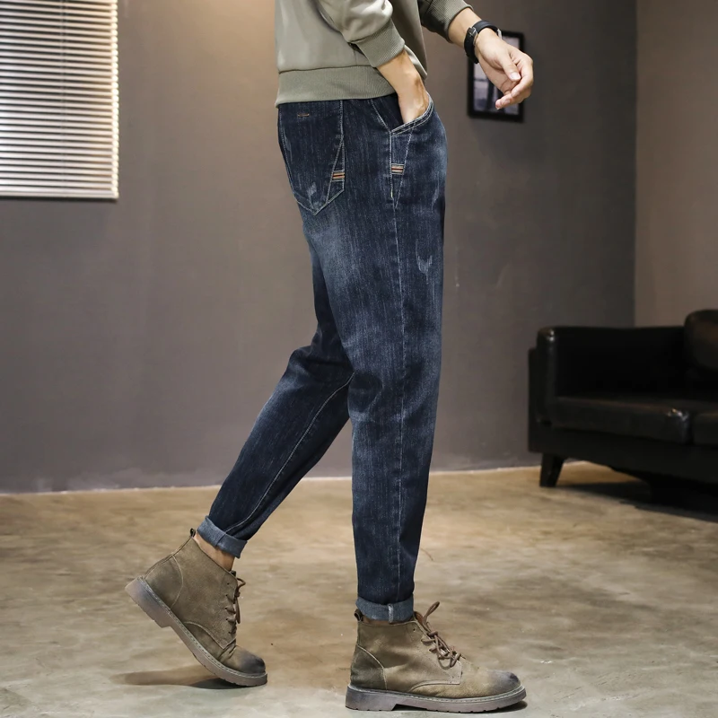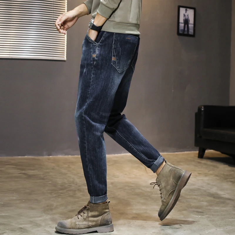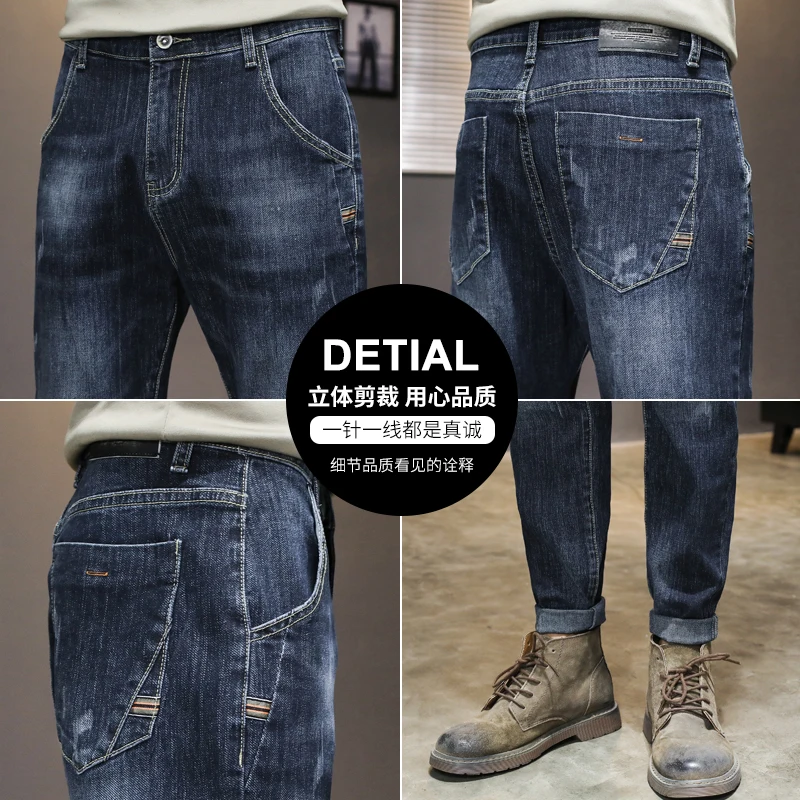 Мужские джинсы повседневные хлопковые джинсы Прямые хлопковые свободные рабочие длинные брюки джинсы синие черные брюки для 4 сезонов K01
