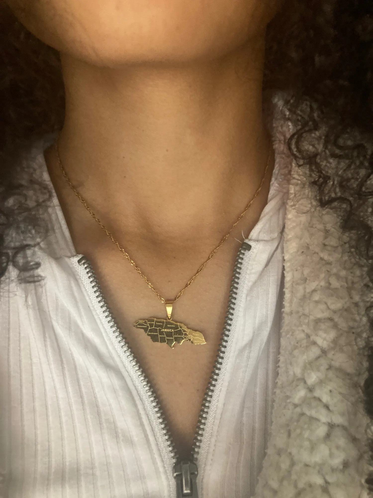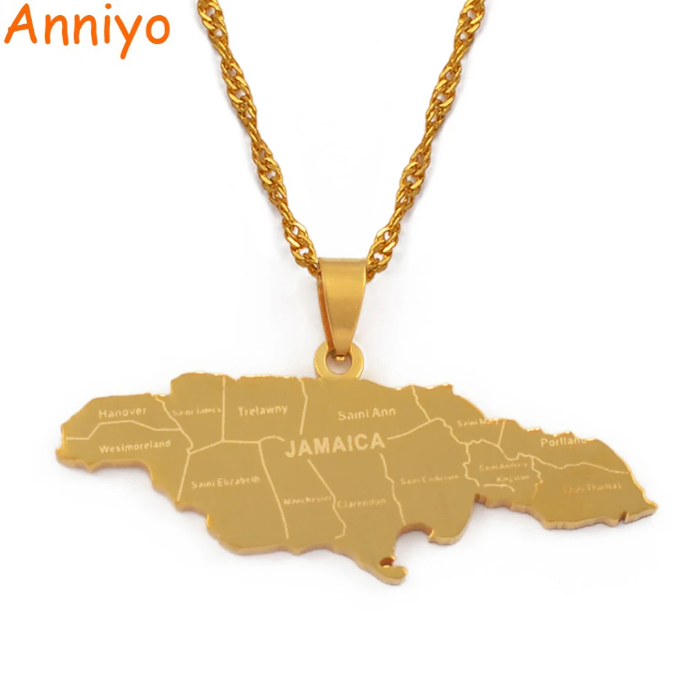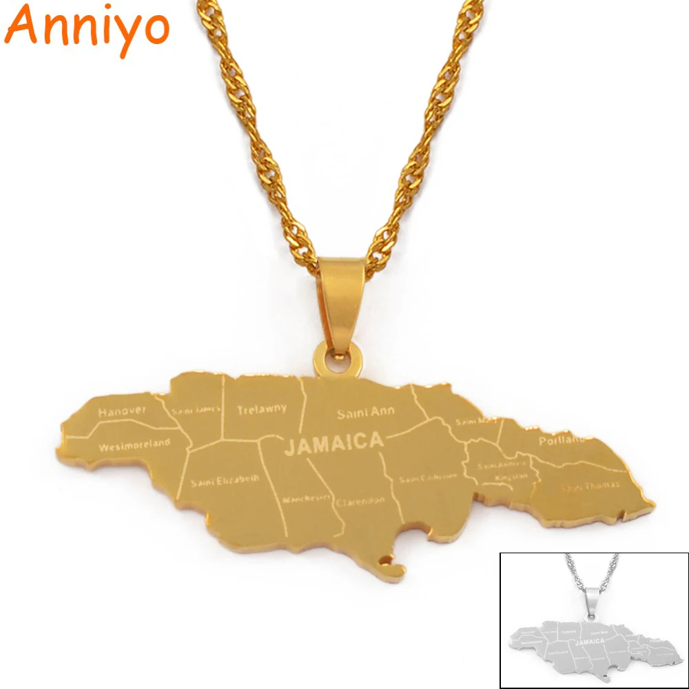 Ожерелье с подвеской Anniyo с картой Ямайки и городом для женщин и девушек из нержавеющей стали карты Ямайки серебристого цветазолотистого цвета #071021