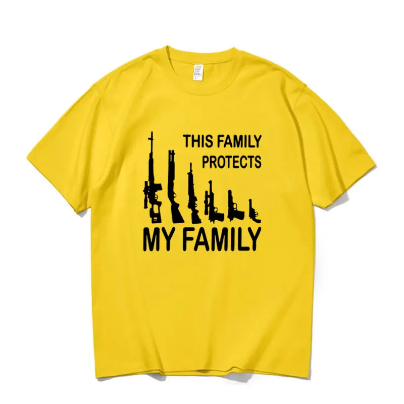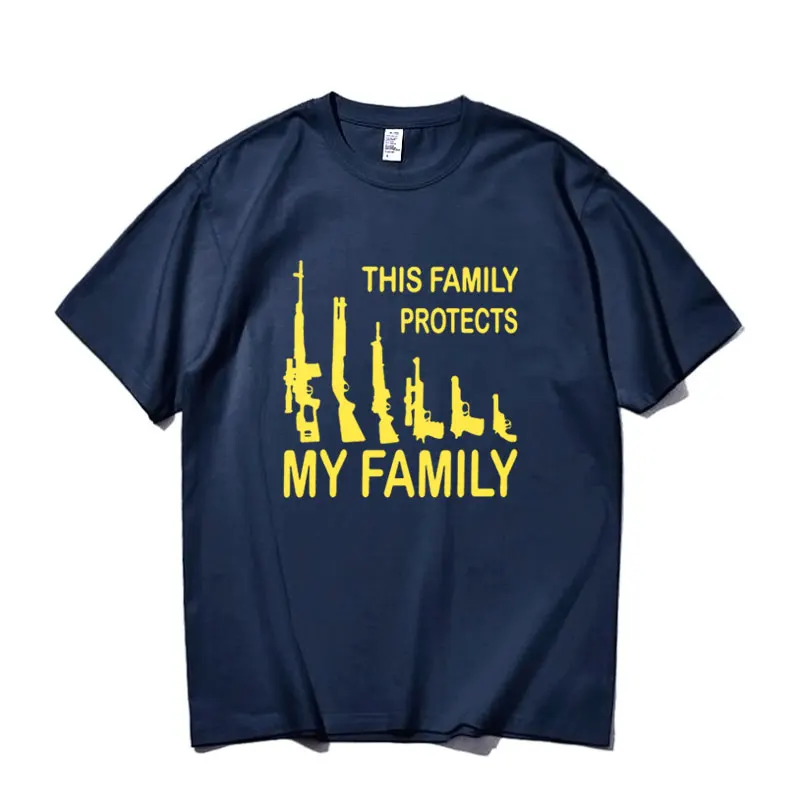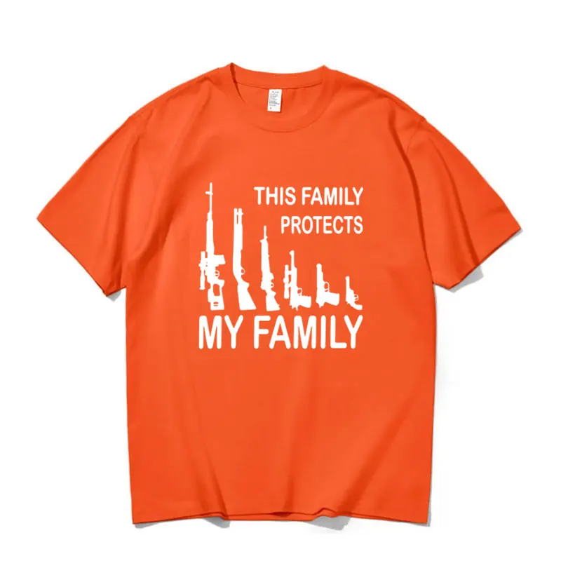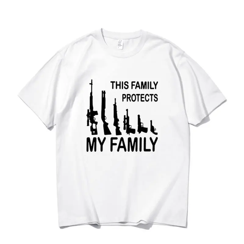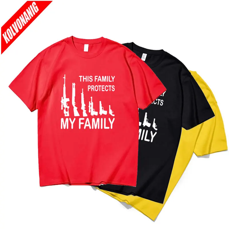 Фирменная мужская одежда, хлопковая Футболка оверсайз с коротким рукавом, эта моя семья защищает оружия, Забавные футболки с графическим рисунком, топы
