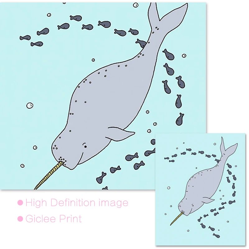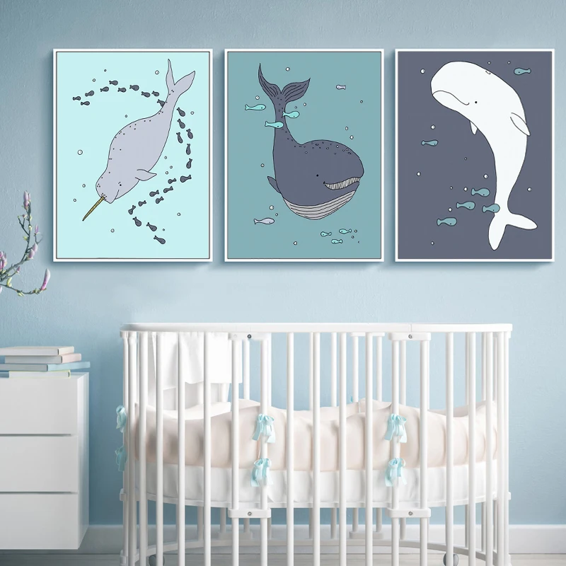 Китовая наружная живопись, Настенная картина, холст, постеры и принты в скандинавском стиле, мультяшное море, искусство, декор детской комнаты