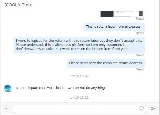 Продавец очень безответственный, им все равно, что вы жалуетесь, если спор уже закрыт, даже если есть проблема с вашим заказом, не покупайте здесь, если вы не хотите, чтобы это произошло и с вами. Товар, который я получил, поврежден, но нет никакого решения, они просто откажутся от вас, потому что они уже получили оплату. Не рекомендуется продавцу!