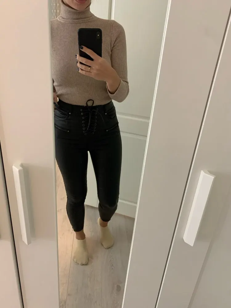 Это просто пушка бомба! Акуенные штанцы!когда открыла, показалось, что я в них не влезу, хотя советовалась даже с продавцом и даже с девушкой, которая уже приобрела такие. Но при надевании они оч хорошо тянутся. Очень удобные, мягкие. Есть небольшой запах, думаю выветрится. У меня рост 168, талия 69, бёдра 93, вес 56 если что)) до щиколотки у меня не достают см 5, но меня не смущает. Планировала носить с ботинками высокими/сапогами ну и с туфлями на каблуках тоже пойдёт